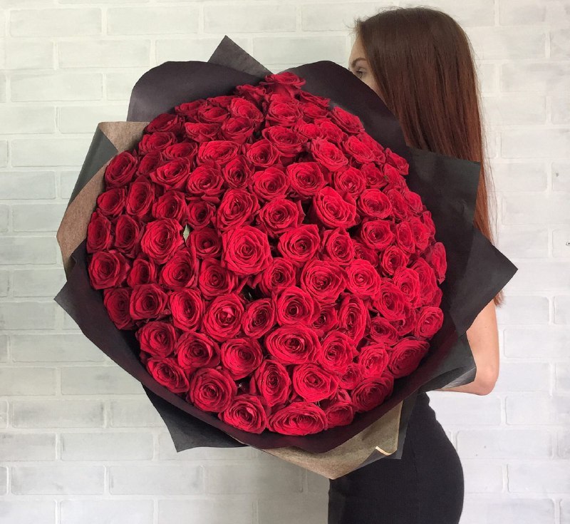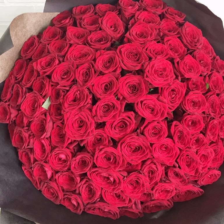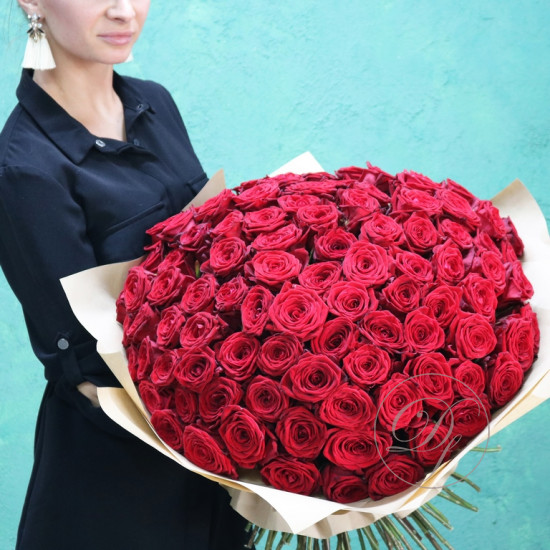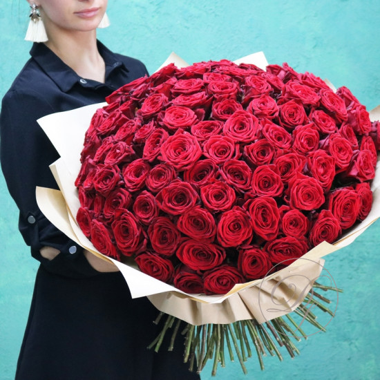 Букет из 101 красной розы. Можно выбрать любую длину роз для вашего букета.