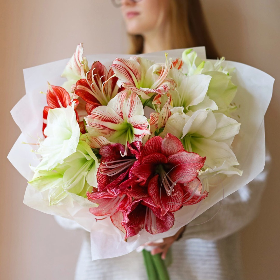 Букет из амариллисов в ассортименте. Вы можете выбрать любое количество цветов указанное в перечне к данному букету.