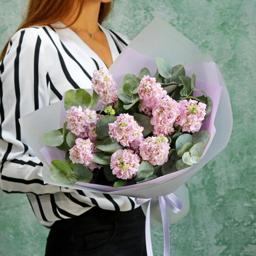 Букет из Маттиолы. Душистые цветы маттиолы бывают разного цвета, на одном стебле собрано множество соцветий, цветок невероятно ароматный. Вы можете выбрать любое количество цветов указанное в перечне к данному букету.