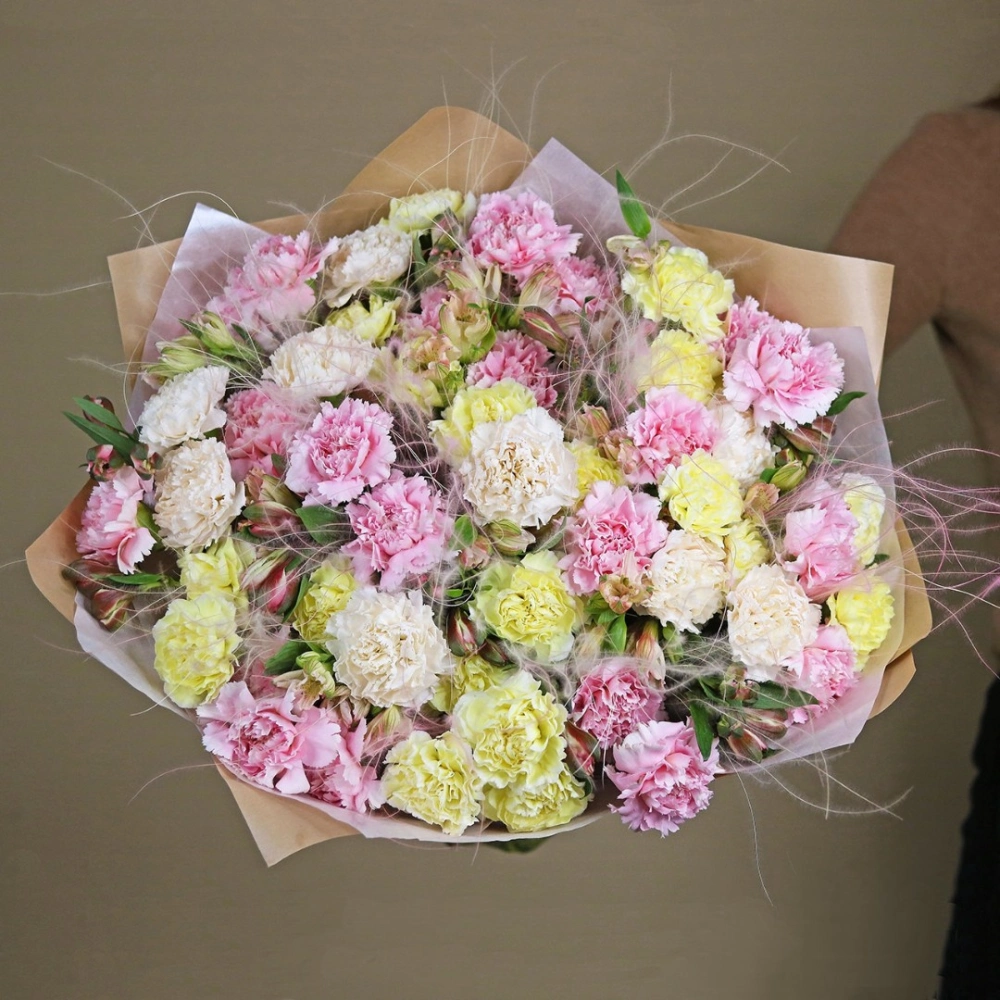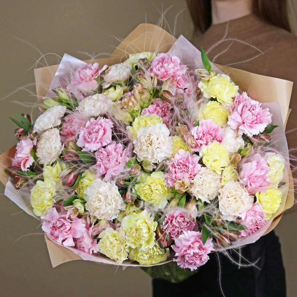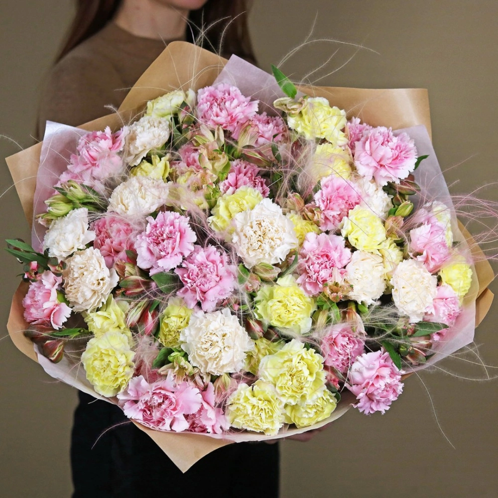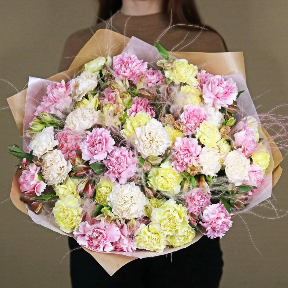 Большой букет из разноцветных гвоздик