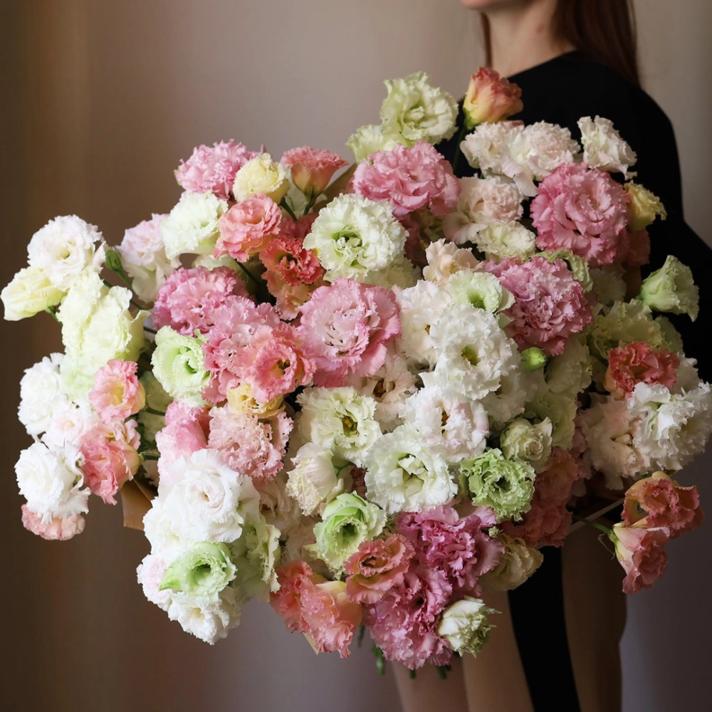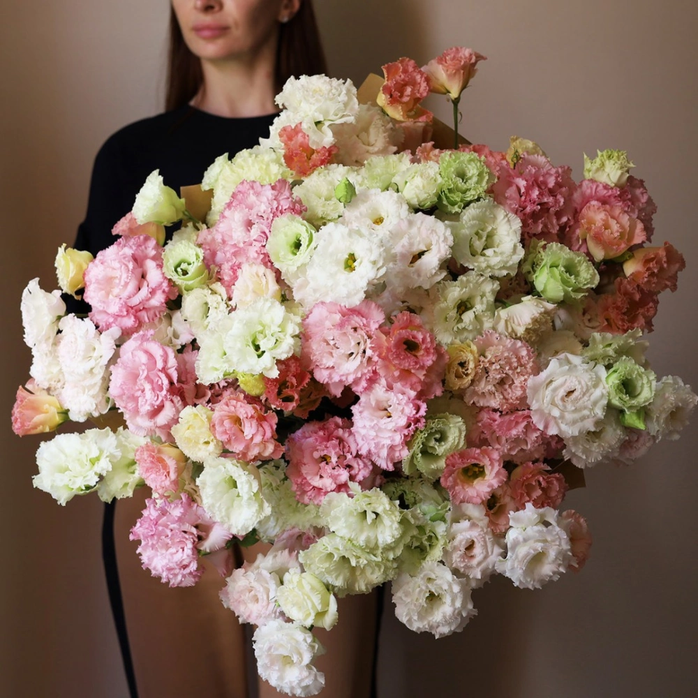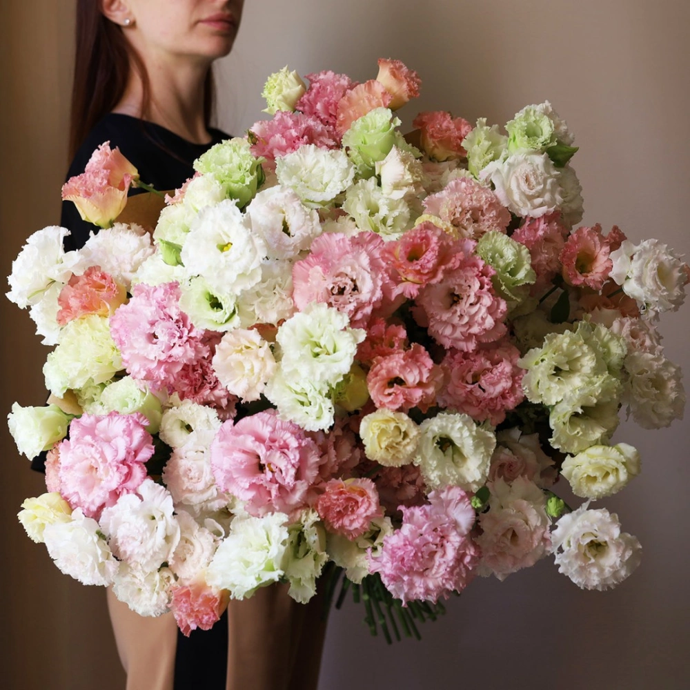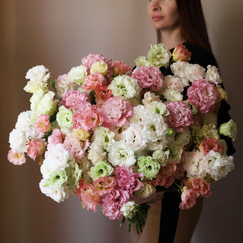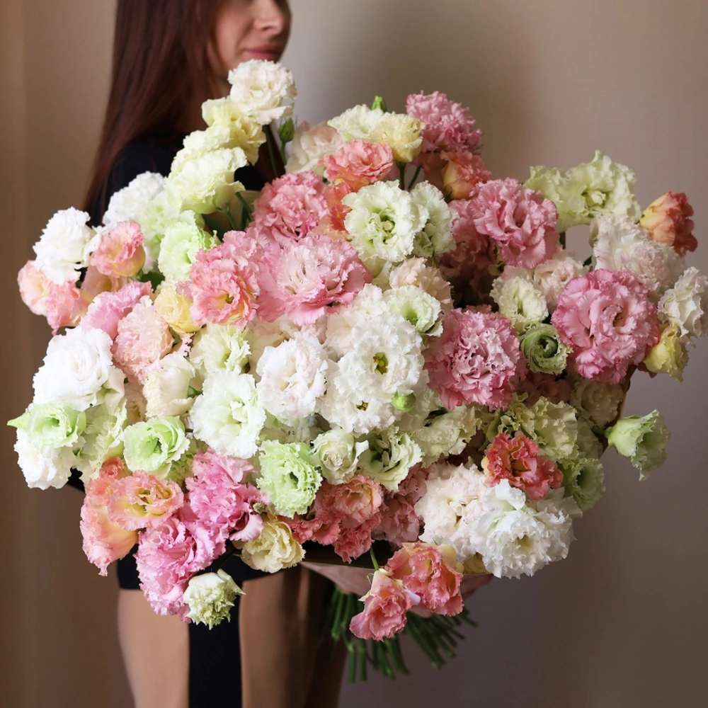 Букет из розовой Эустомы (Лизиантус). На фотографии 29 веточек разноцветной эустомы. Вы можете выбрать любое количество цветов указанное в перечне к данному букету.