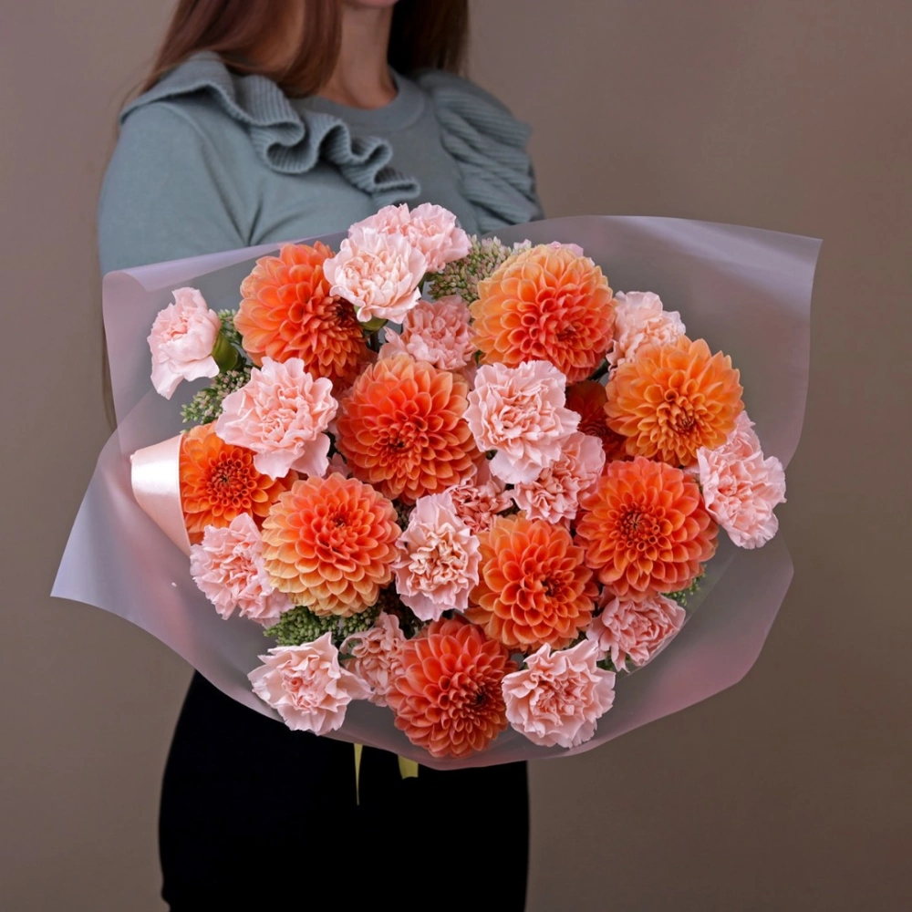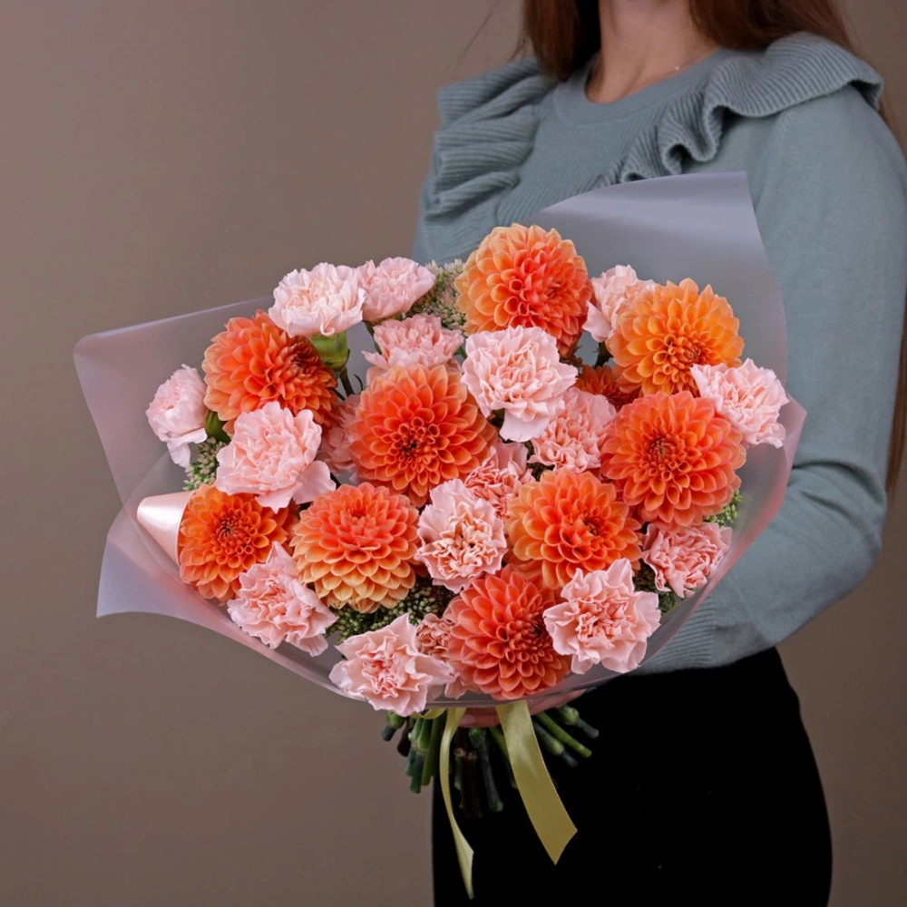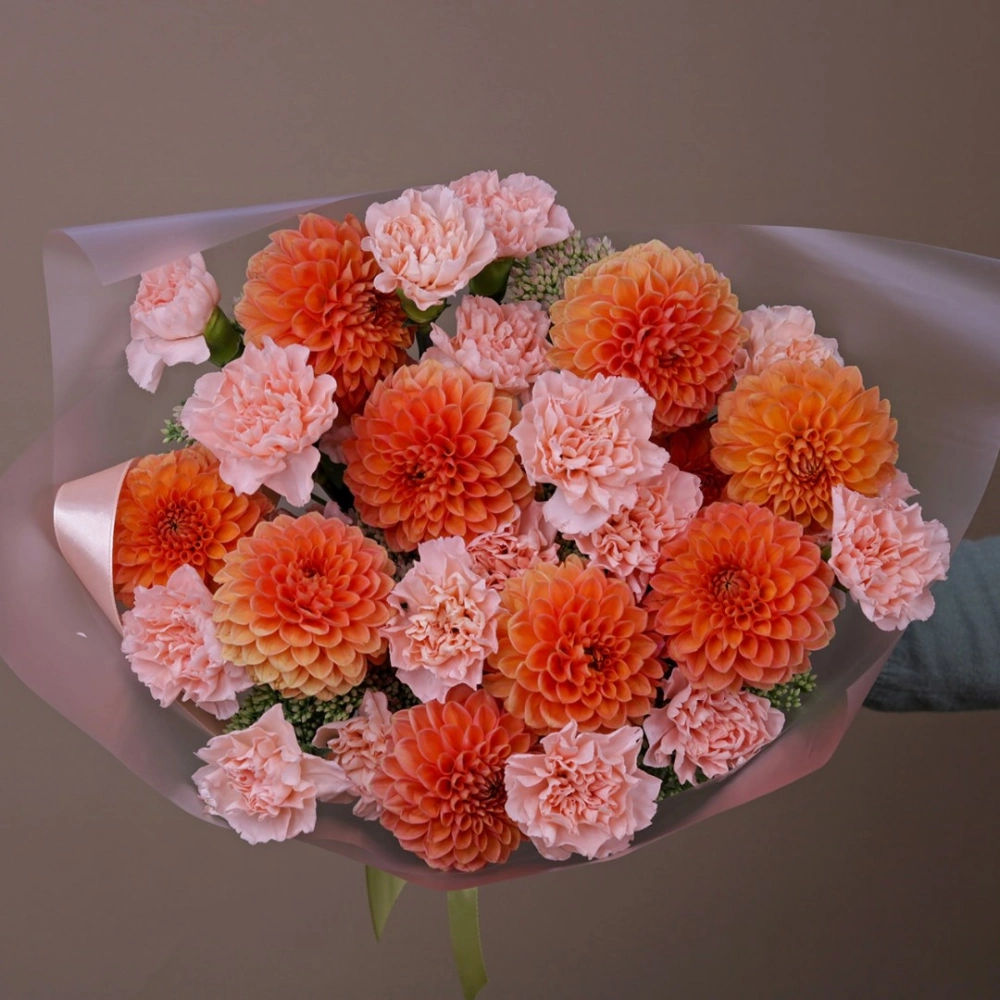 Букет из Георгин и эустомы. Вы можете выбрать любое количество цветов указанное в перечне к данному букету.
