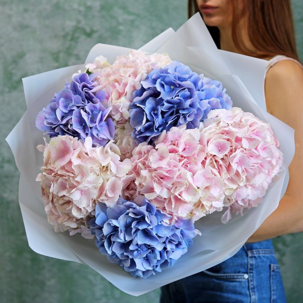 Букет из разноцветных Гортензий. Вы можете выбрать любое количество цветов указанное в перечне к данному букету.