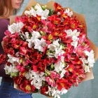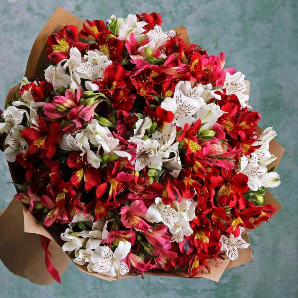 Букет из красной, розовой и белой альстромерии