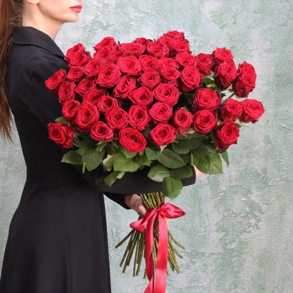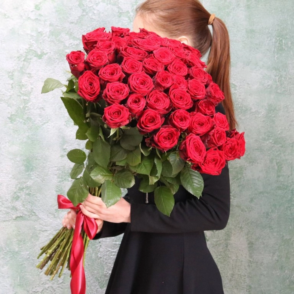 Букет из красных роз высотой 70 см. Вы можете выбрать любое количество цветов указанное в перечне к данному букету.