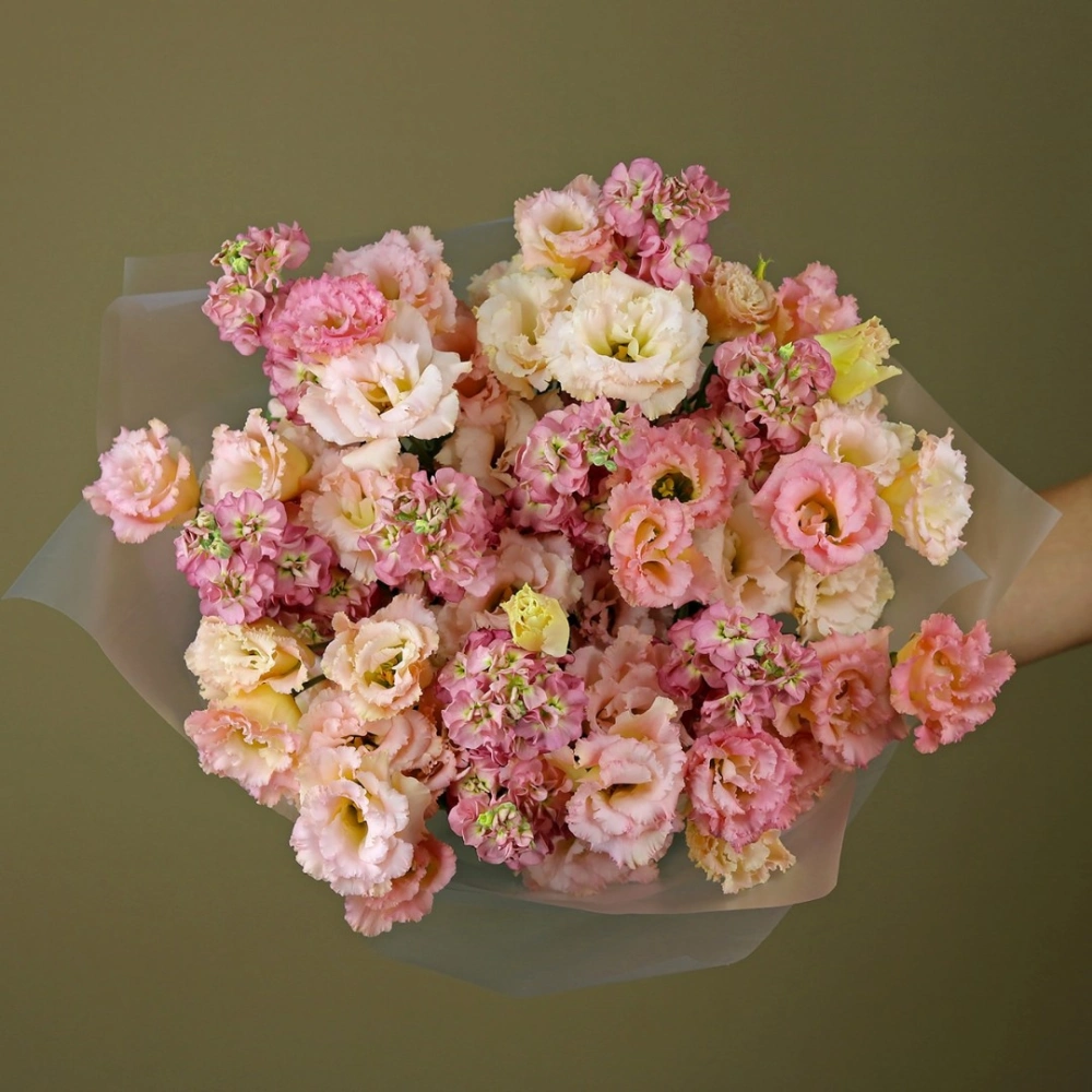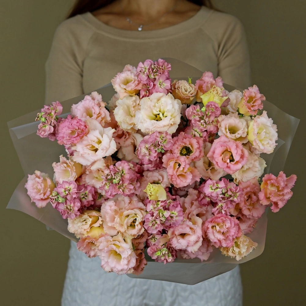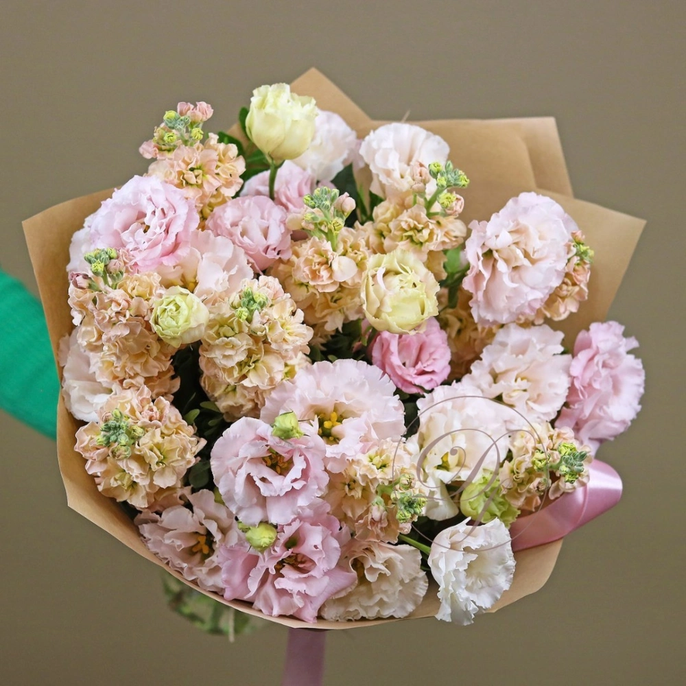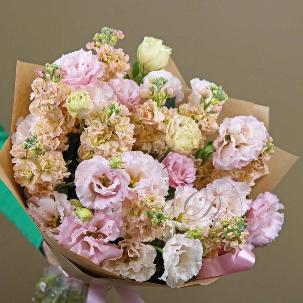 Букет из эустомы и маттиолы. Вы можете выбрать любой размер букета, указаный в перечне к данному букету.