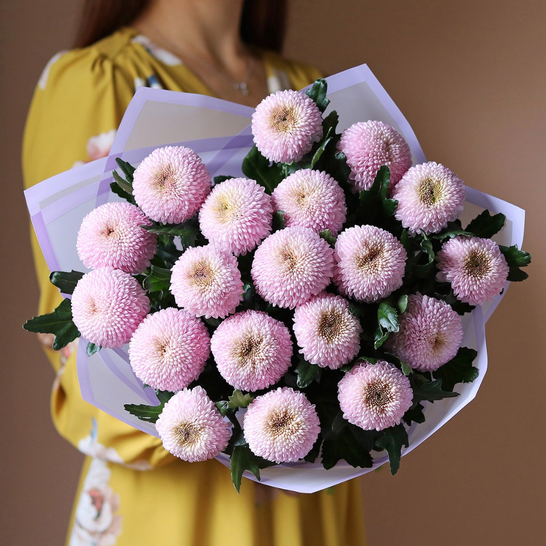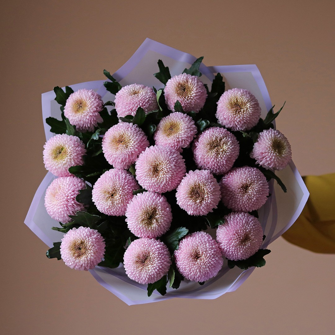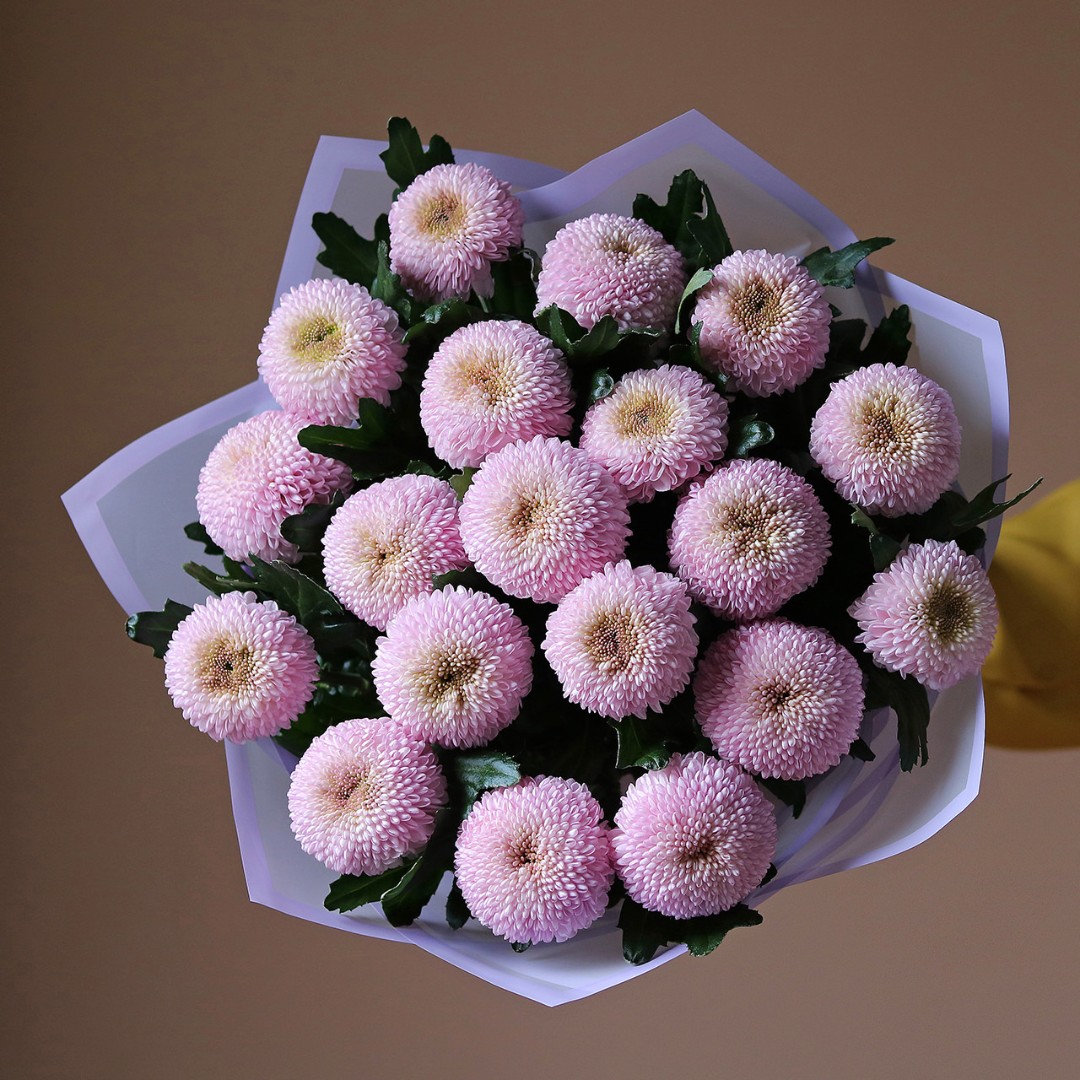 Букет из одноголовых хризантем лавандового цвета. Вы можете выбрать любое количество цветов указанное в перечне к данному букету.