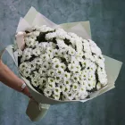 Букет из кустовой Хризантемы. На фотографии букет из 25 хризантем. Вы можете выбрать любое количество цветов указанное в перечне к данному букету.