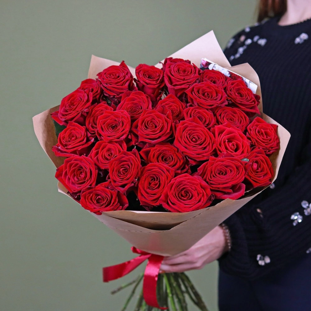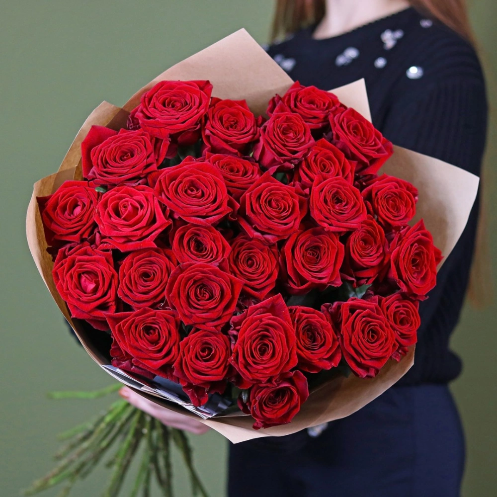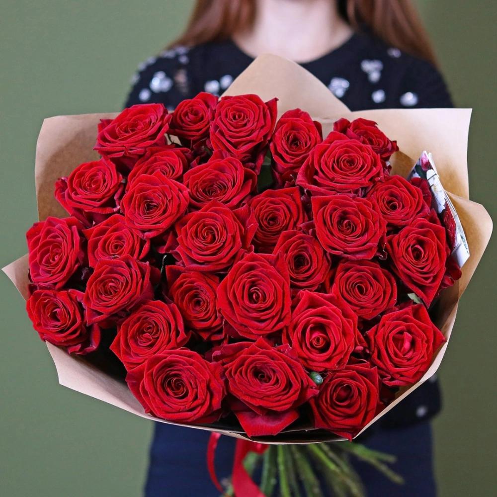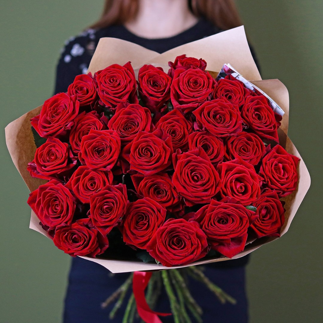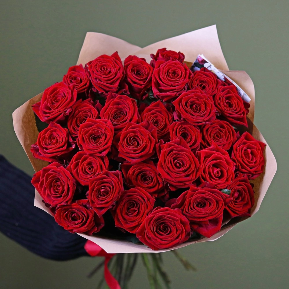 Букет из красных роз. На фотографии букет из 29 роз. Вы можете выбрать любое количество цветов указанное в перечне к данному букету.