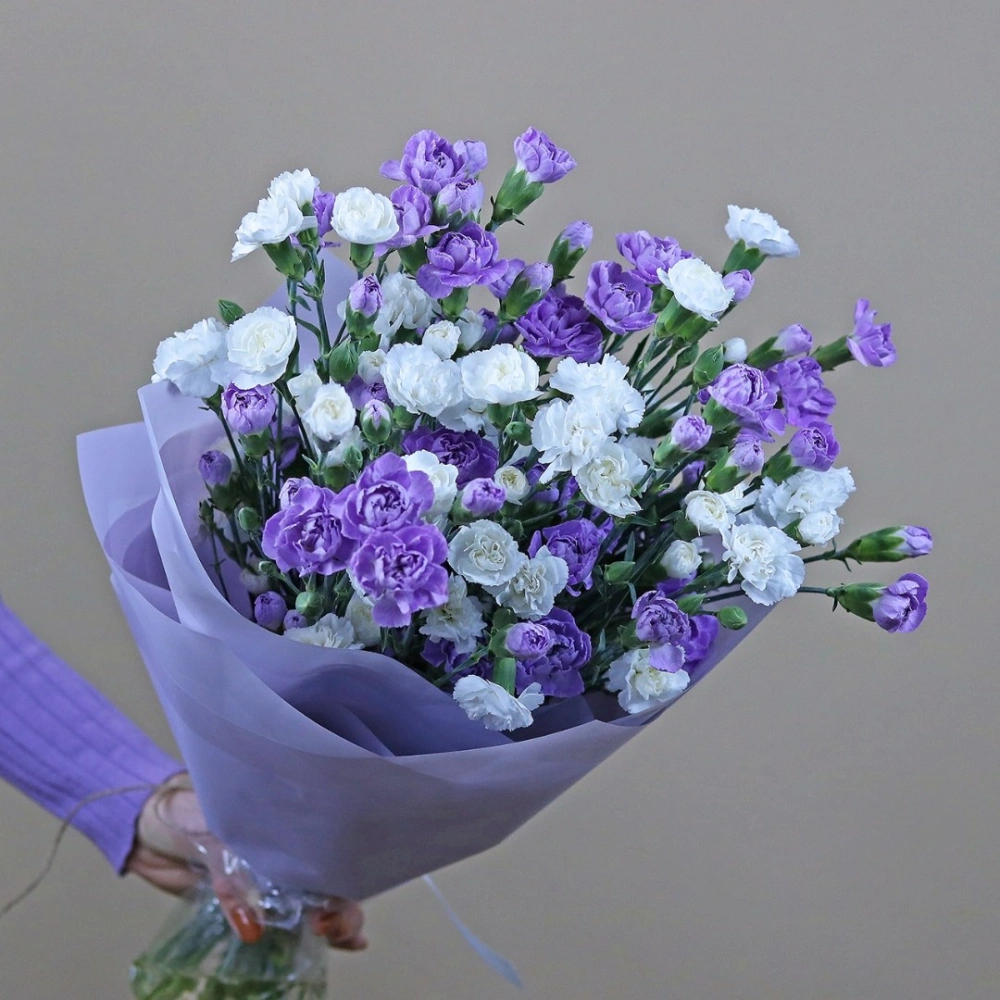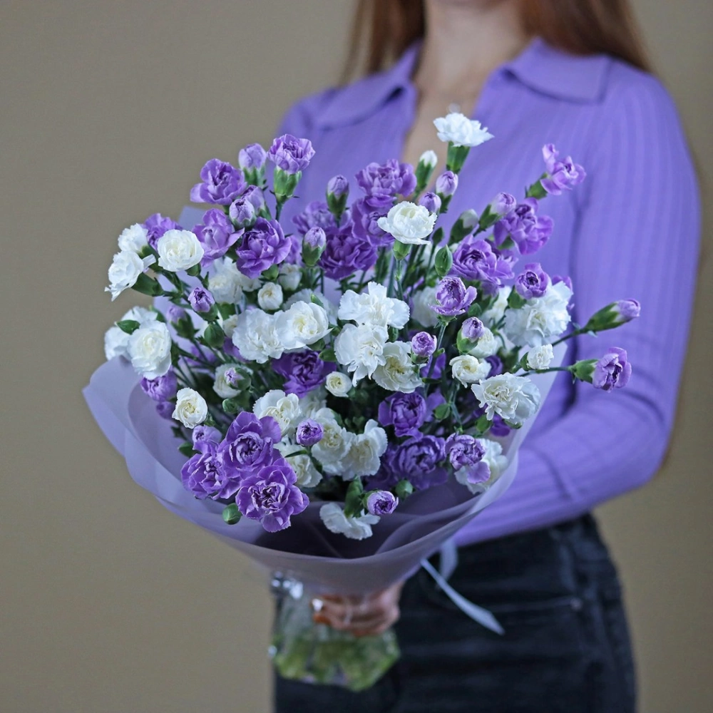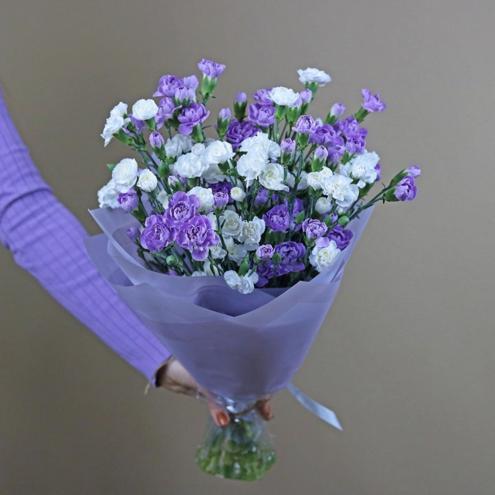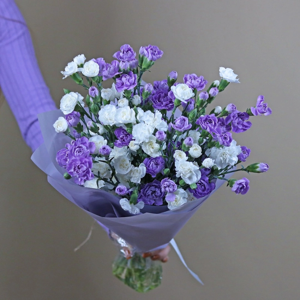 Монобукет из кустовой гвоздики. Вы можете выбрать любое количество цветов указанное в перечне к данному букету.