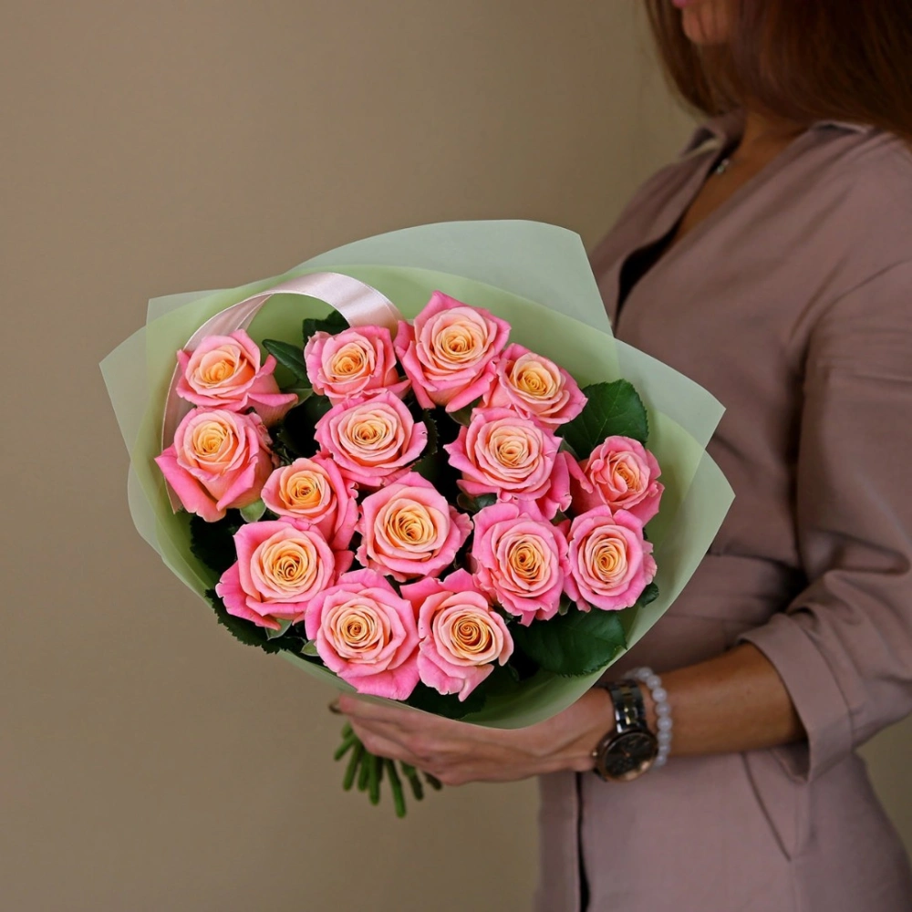 Букет из розы сорт Мисс Пигги. Вы можете выбрать любое количество цветов указанное в перечне к данному букету.