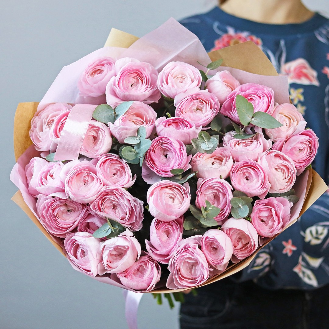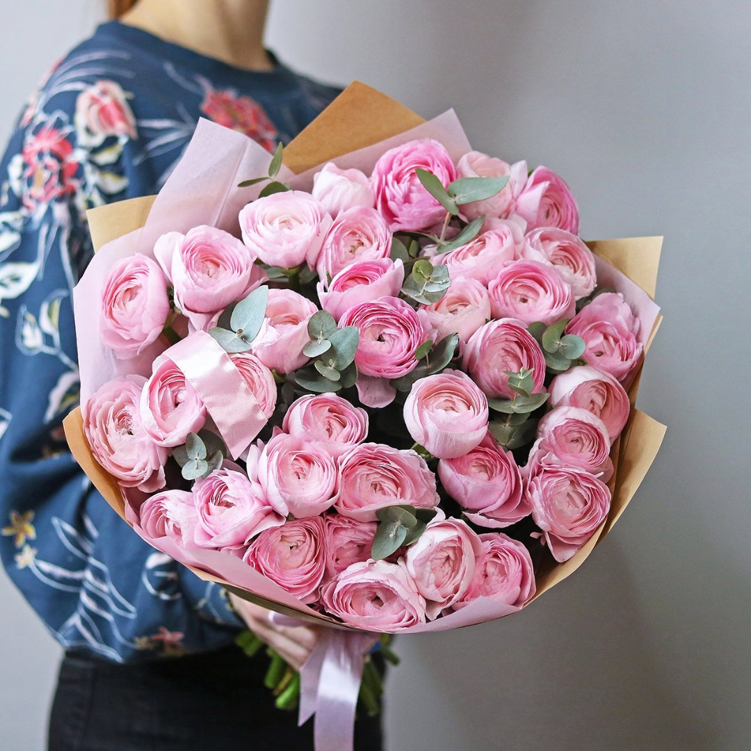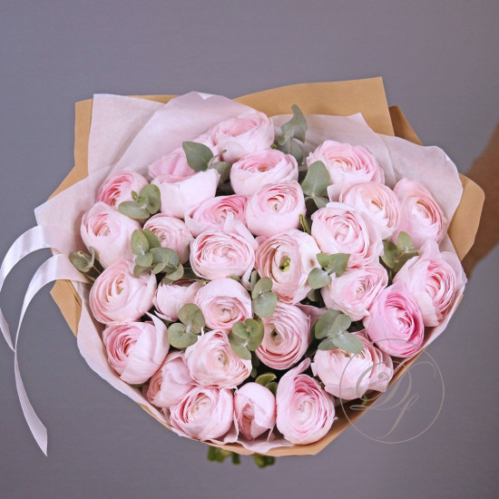 Букет из Ранункулюсов с эвкалиптом. Вы можете выбрать любое количество цветов указанное в перечне к данному букету.