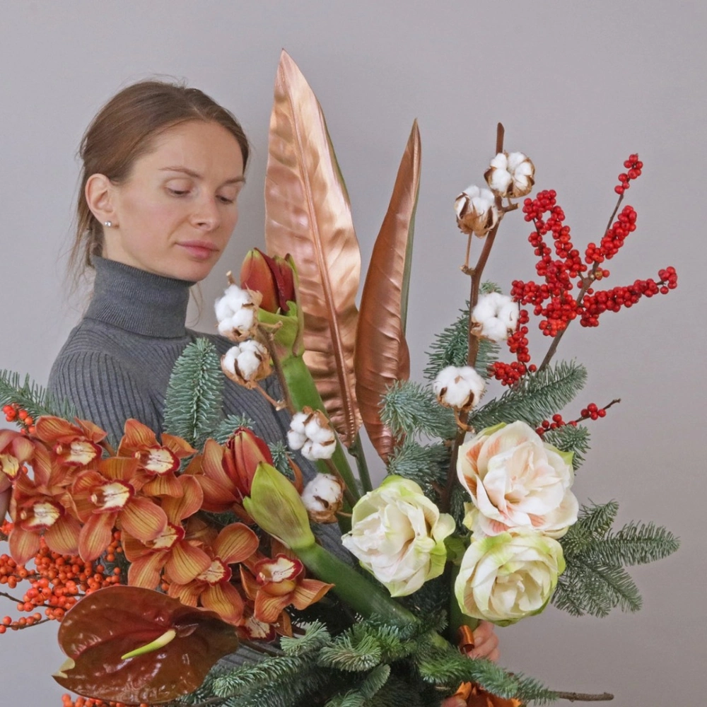 Понравился сервис в подборе букета на торжество, цветы были свежие, всё очень красиво, очень стильна...