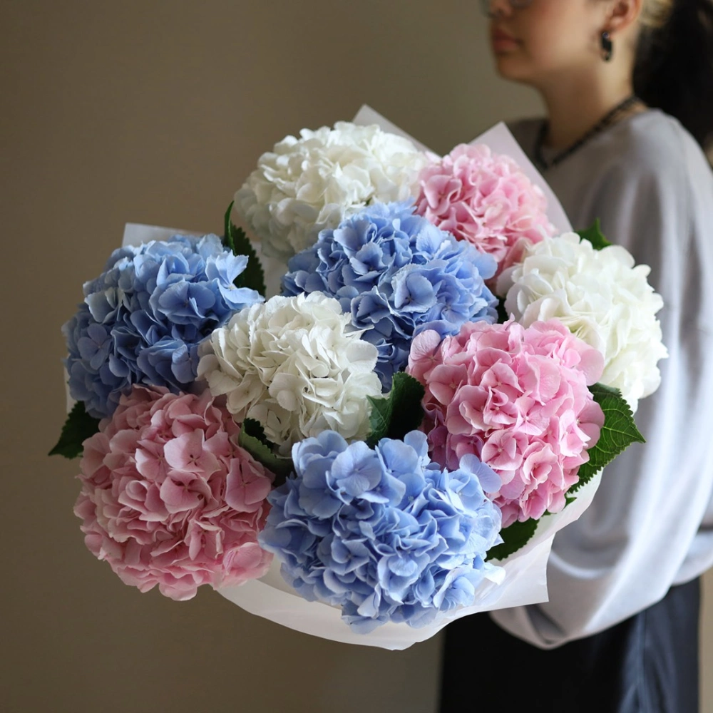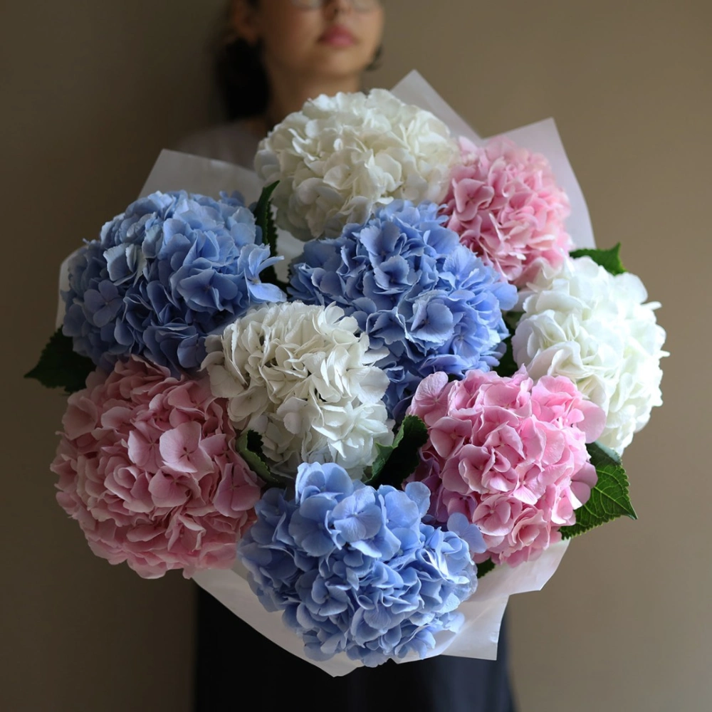 Букет из разноцветных Голландских гортензий. Вы можете выбрать любое количество цветов указанное в перечне к данному букету.