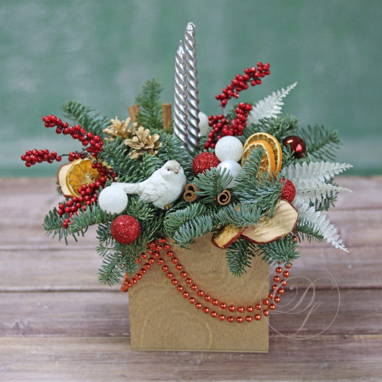 Оформить заказ на новогоднюю ёль лучше заранее, минимум за сутки, для изготовления ёлочки и подбора декора требуется время. Композиция выполнена из натуральной ели (лапник), собрана на специальной губке, которая пропитана водой, это позволяет сохранить свежий внешний вид на максимально долгий срок.
