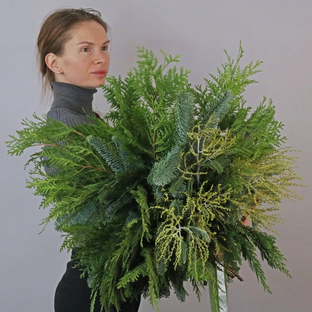 Ощутите аромат свежей зеленой хвои и привнесите нотки природы в свой дом с этим удивительным букетом. Каждая веточка хвои тщательно подобрана, чтобы создать элегантный и стильный акцент для вашего интерьера. Букет из хвои не только придает свежесть и аромат вашему пространству, но также является прекрасным подарком для близких и друзей. Позвольте себе насладиться красотой и уютом, который приносит этот уникальный букет из хвои.