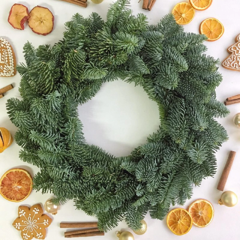 Новогодний венок из натуральной ароматной ели для декора. Вы можете самостоятельно украсить венок на свой вкус. Такой венок станет замечательным подарком в преддверии Нового Года и Рождества для ваших родных, друзей, родителей, коллег, знакомых.