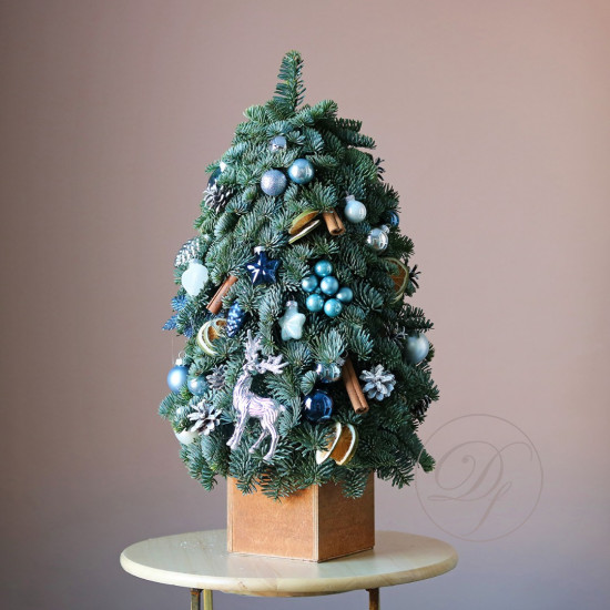 Оформить заказ на новогоднюю ёль лучше заранее, минимум за сутки, для изготовления ёлочки и подбора декора требуется время. Композиция выполнена из натуральной ели (лапник), собрана на специальной губке, которая пропитана водой, это позволяет сохранить свежий внешний вид на максимально долгий срок.