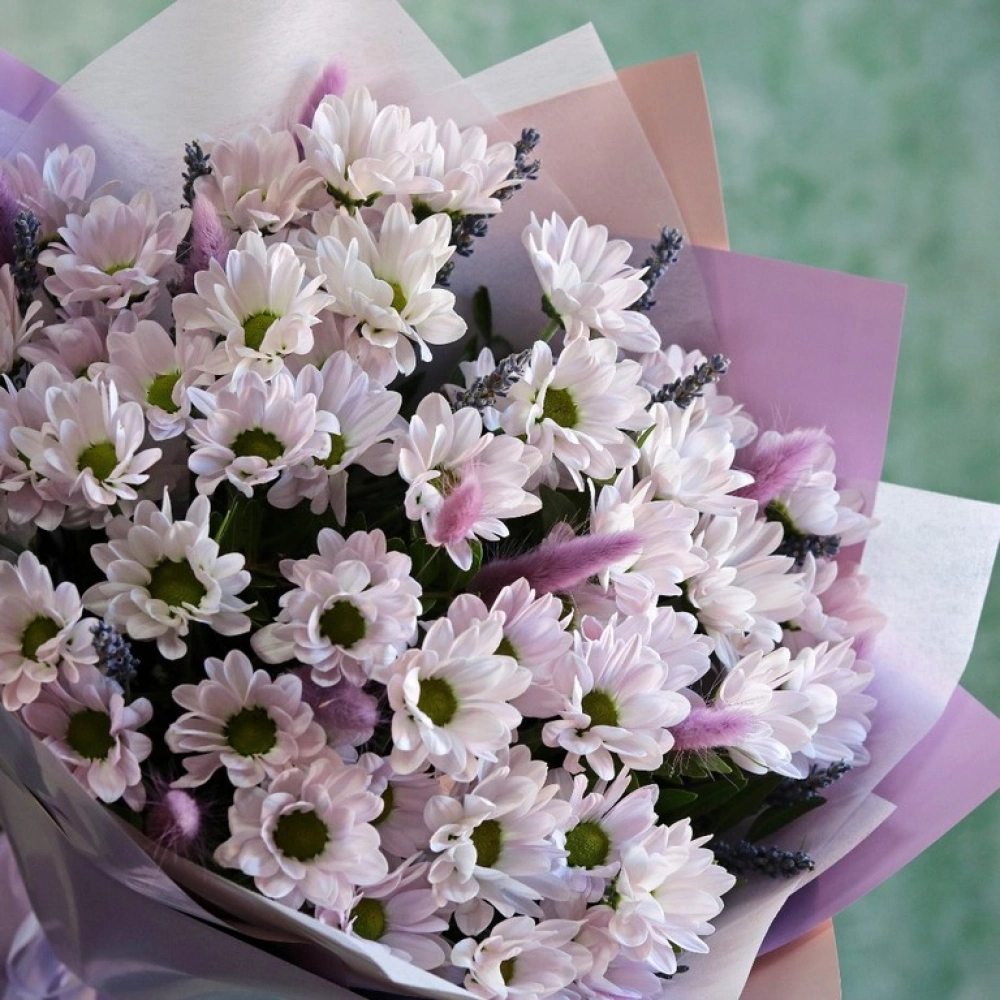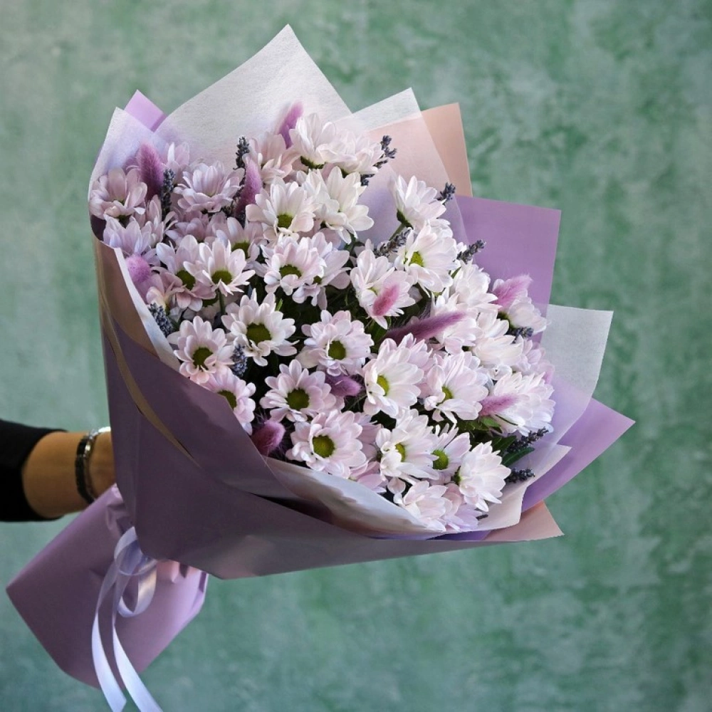 Букет из кустовой Хризантемы с лавандой. Вы можете выбрать любое количество цветов указанное в перечне к данному букету.