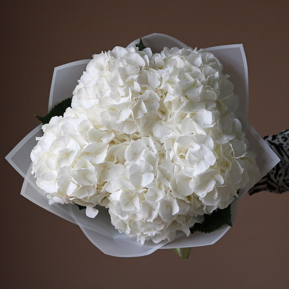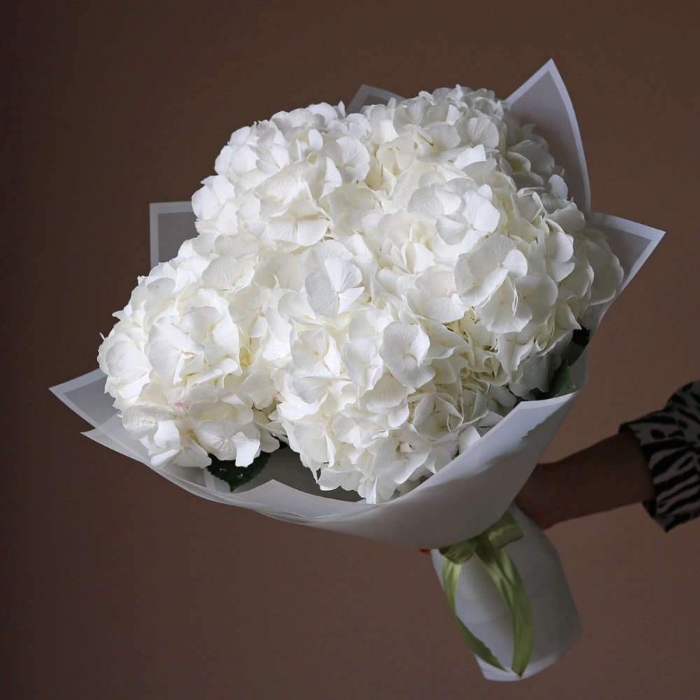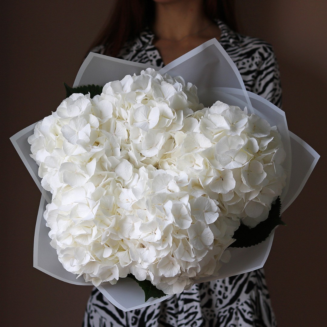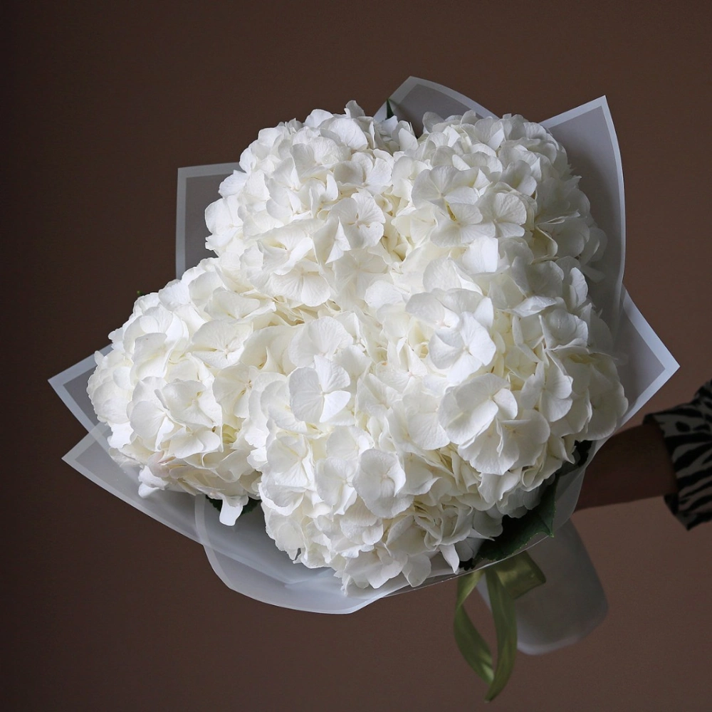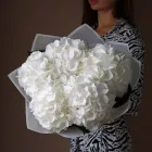 Букет из крупной, белой гортензии из Голландии. Вы можете выбрать любое количество цветов указанное в перечне к данному букету.