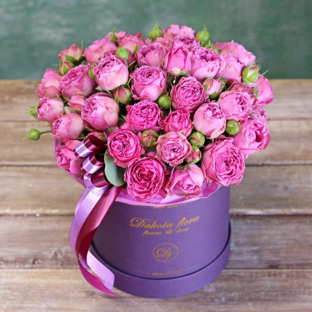 Цветы в коробках это композиции, составленные с использованием специальной губки Oasis (пиафлор) которая пропитана водой. Для того чтобы цветы дольше оставались свежими, добавляйте в нее немного воды каждый день.