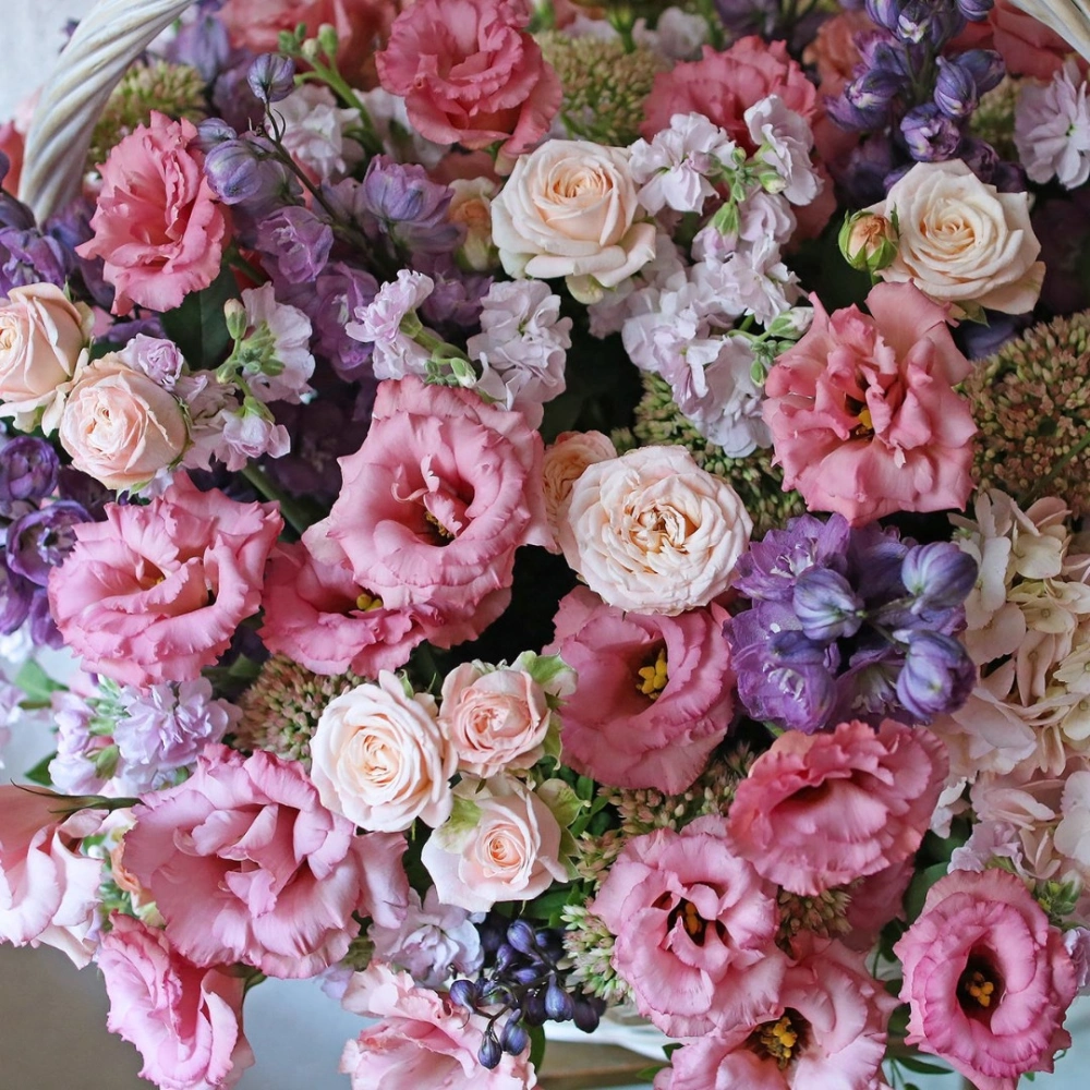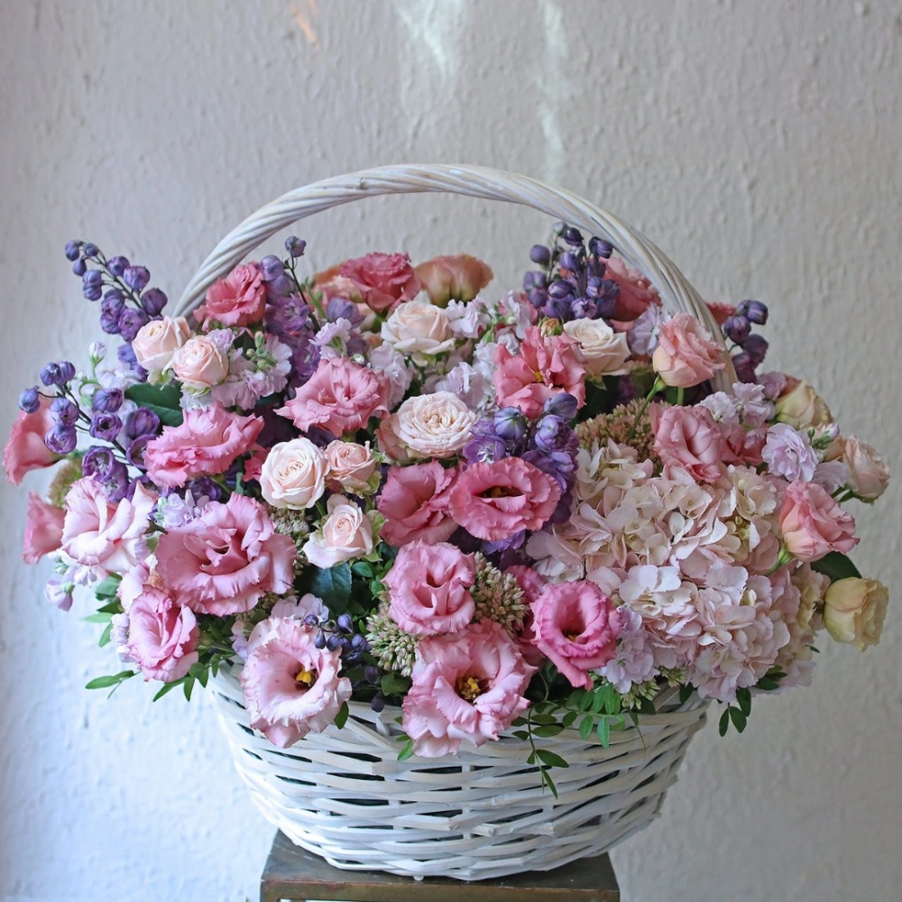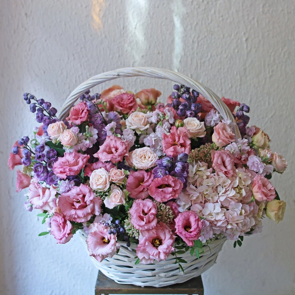 Корзина с цветами от интернет-магазина Дакота флора - это настоящий шедевр цветочного искусства. В ней собраны самые изысканные и красивые цветы, которые привлекают внимание своей неповторимой красотой и ароматом. Розы, маттиола, эустома, гортензия и дельфинум - каждый цветок в этой корзине является уникальным и прекрасным. Они гармонично сочетаются друг с другом, создавая неповторимую атмосферу уюта и тепла. Кроме того, корзина оформлена в соответствии с последними тенденциями в дизайне цветочных композиций и выглядит очень элегантно. Этот подарок станет настоящим украшением для любого интерьера и порадует своего получателя своей изысканностью и красотой. Заказать корзину с цветами в интернет-магазине Дакота флора - это просто и удобно, доставка осуществляется в любую точку города в указанное время. Подарите эту корзину и подарите радость и удовольствие!