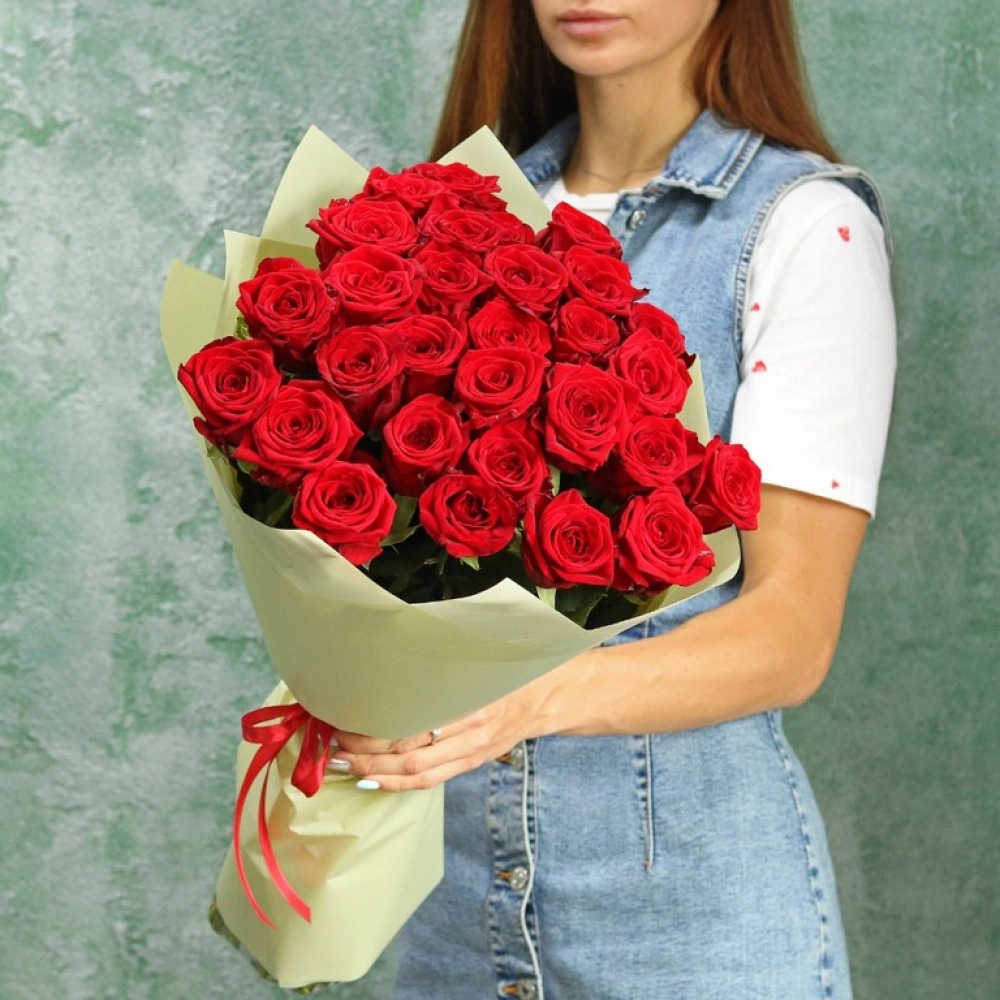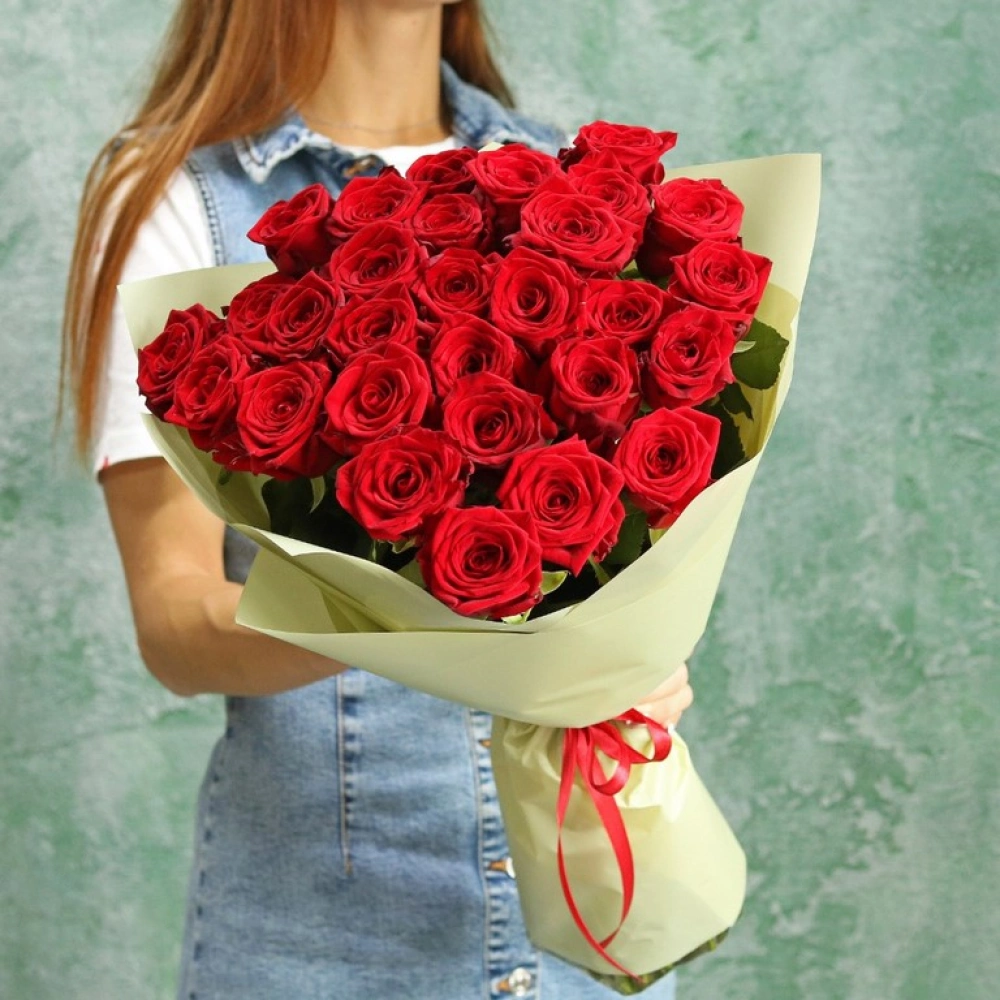 Букет из красных роз высотой 70 см. Вы можете выбрать любое количество цветов указанное в перечне к данному букету.