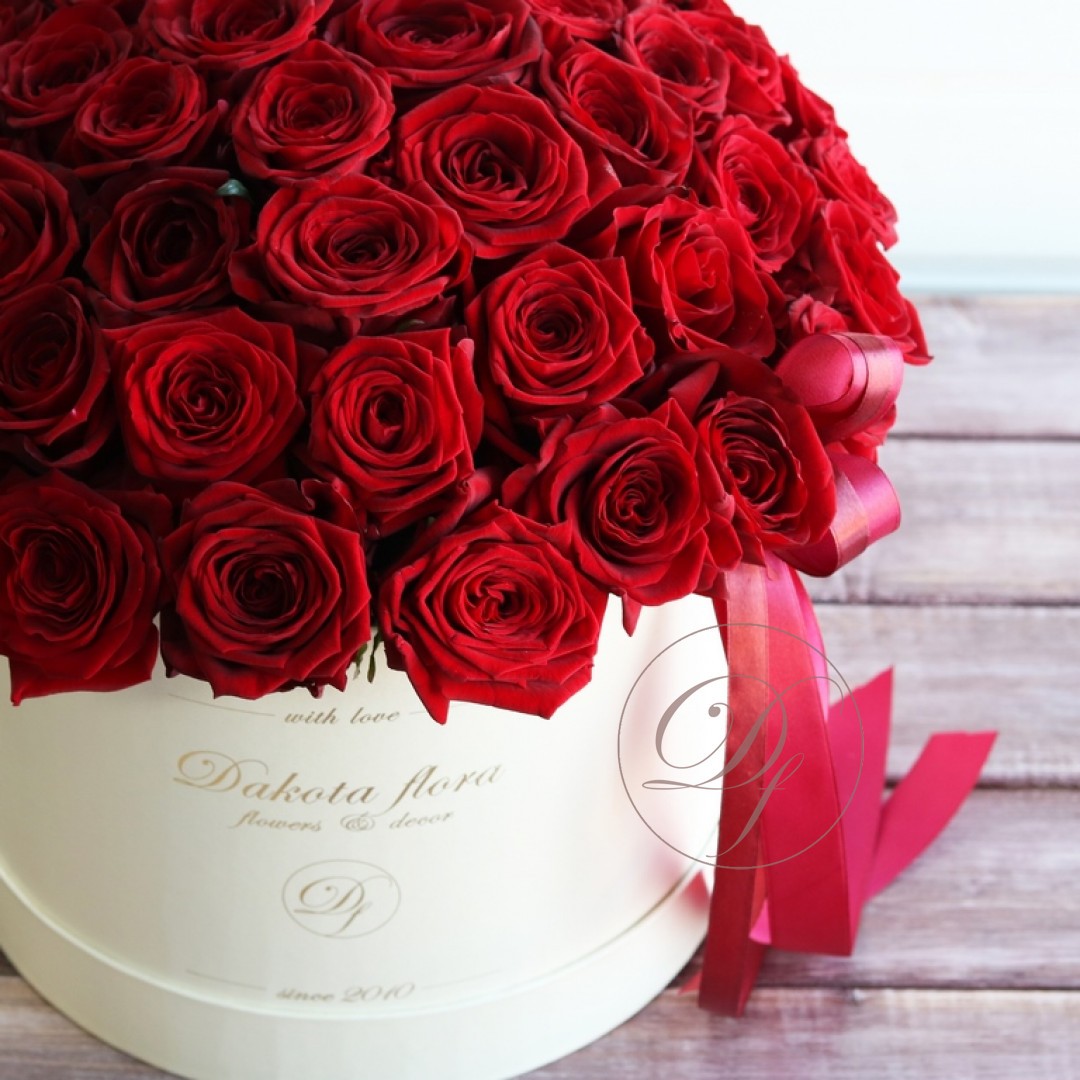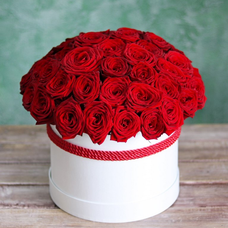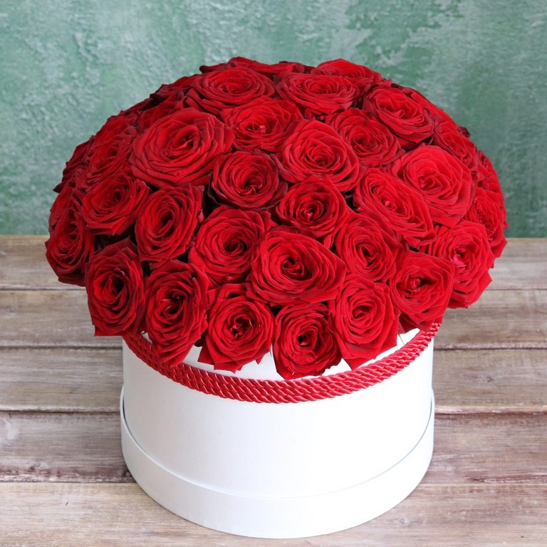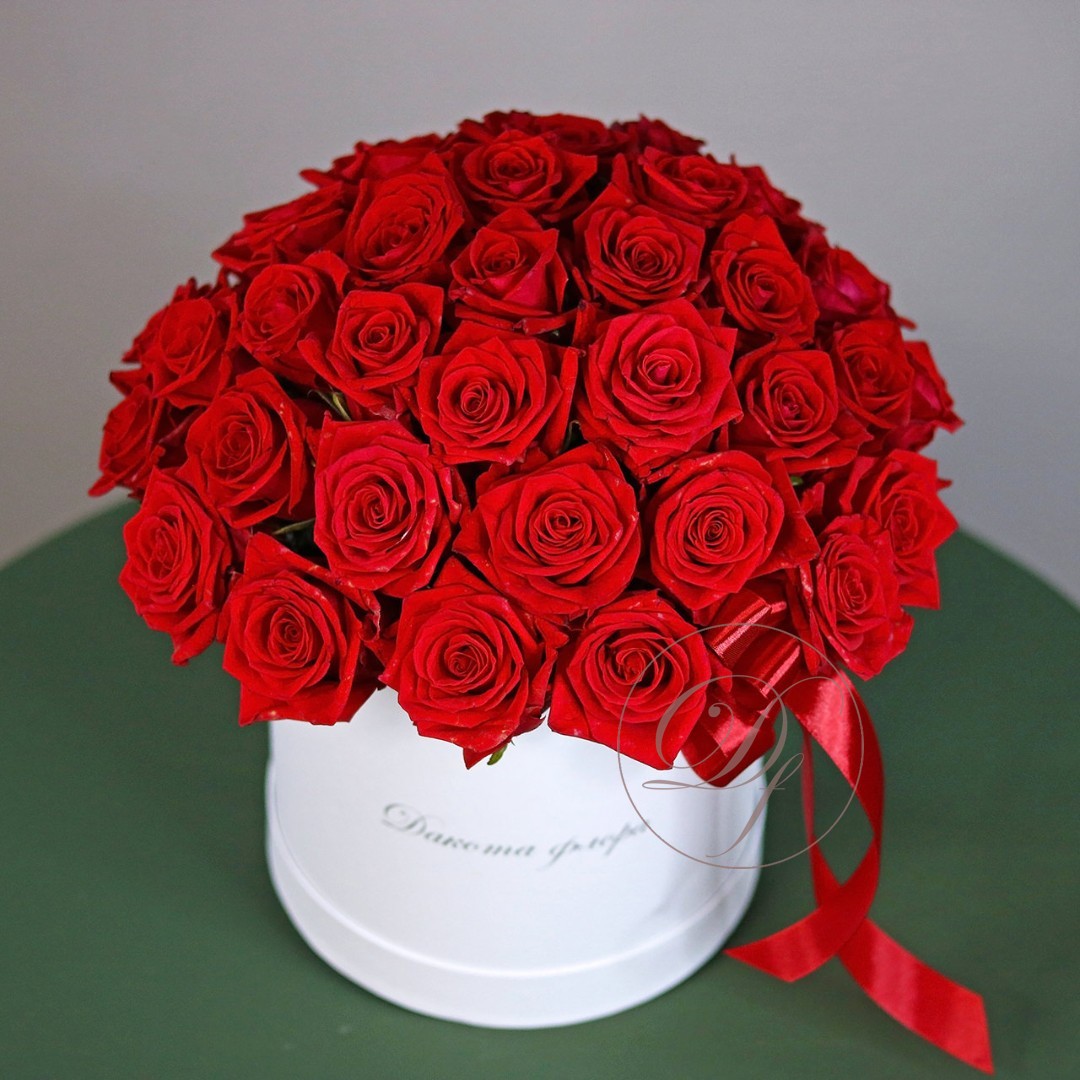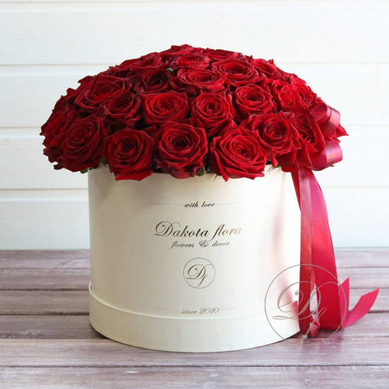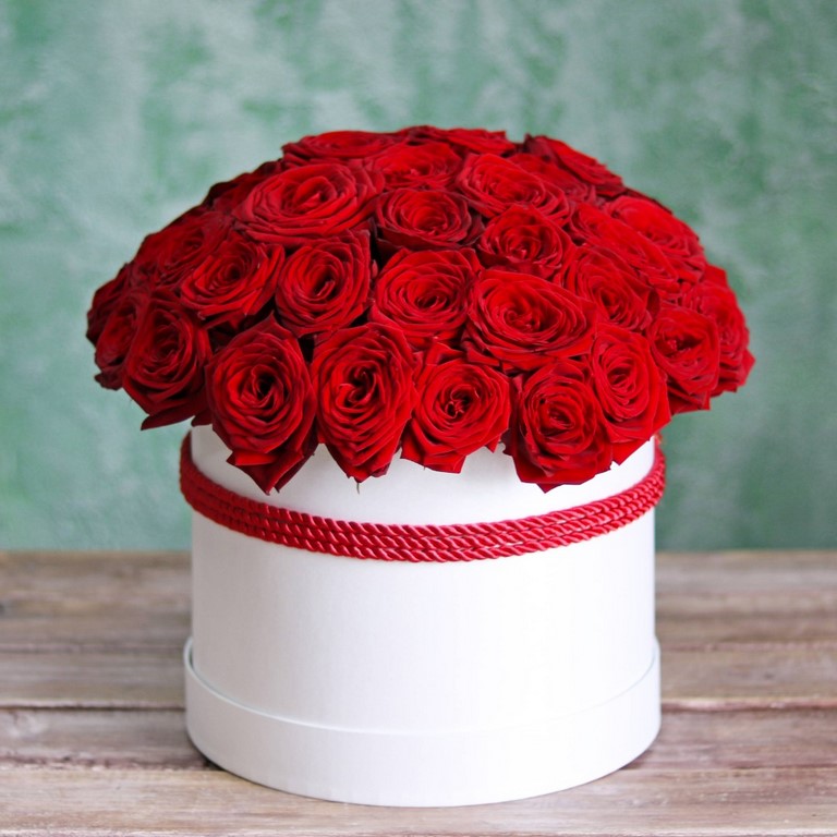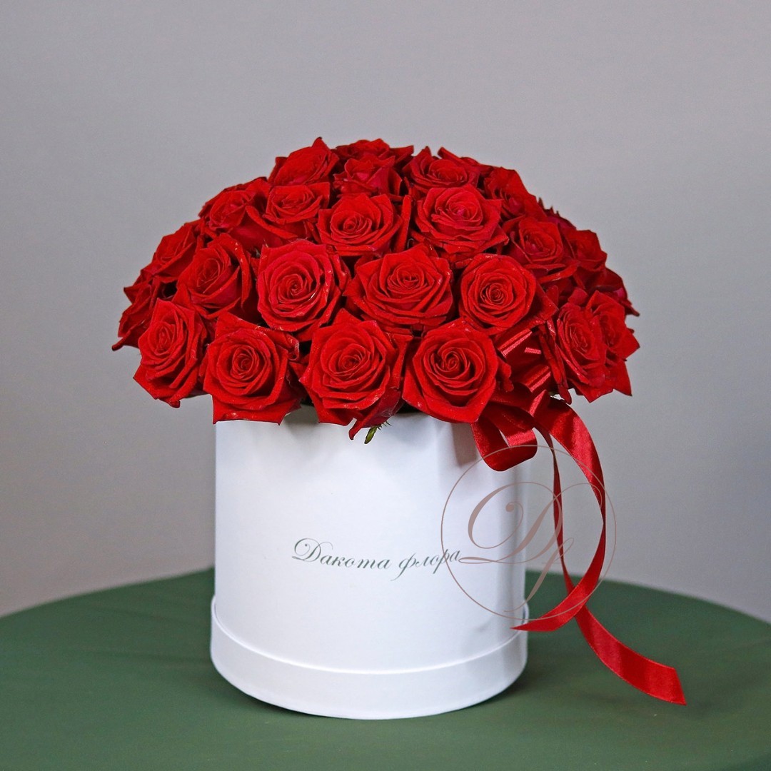 Красные розы в белой коробке