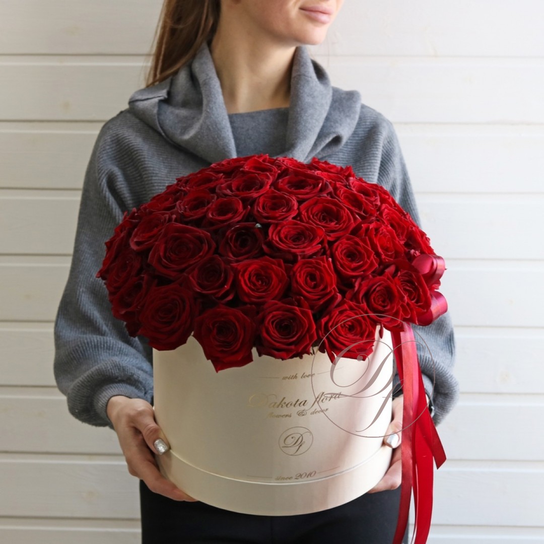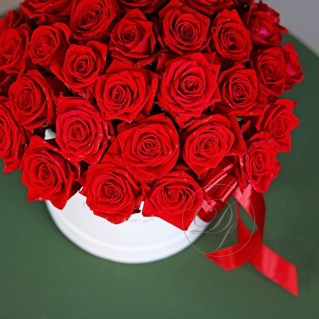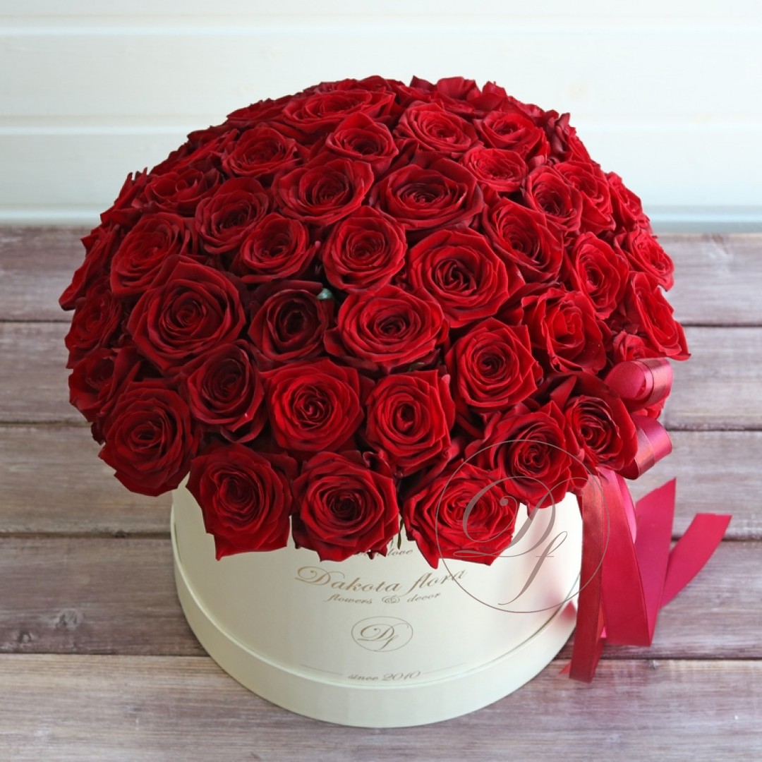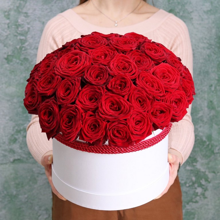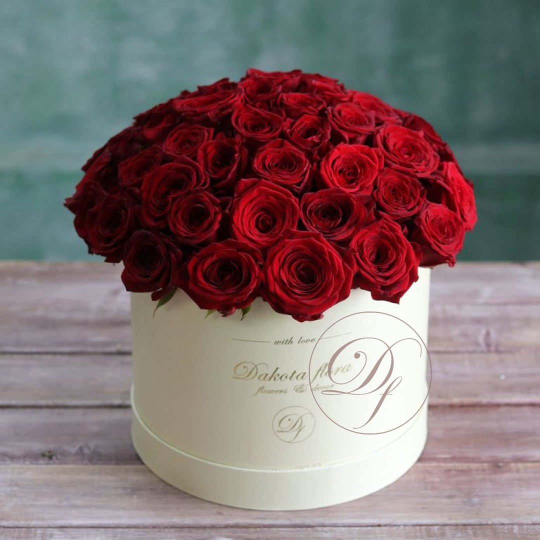 Красные розы в белой коробке