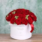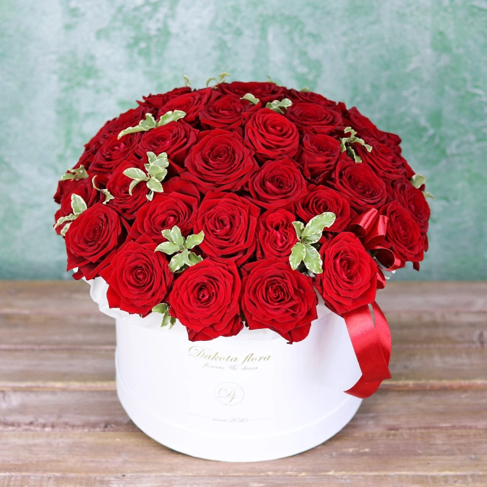 Цветы в коробках это композиции, составленные с использованием специальной губки Oasis (пиафлор) которая пропитана водой. Для того чтобы цветы дольше оставались свежими, добавляйте в нее немного воды каждый день.