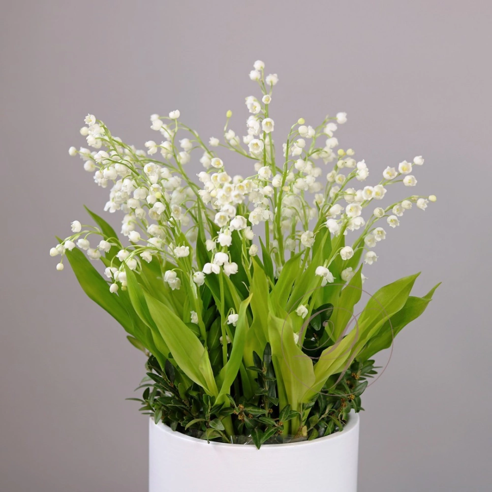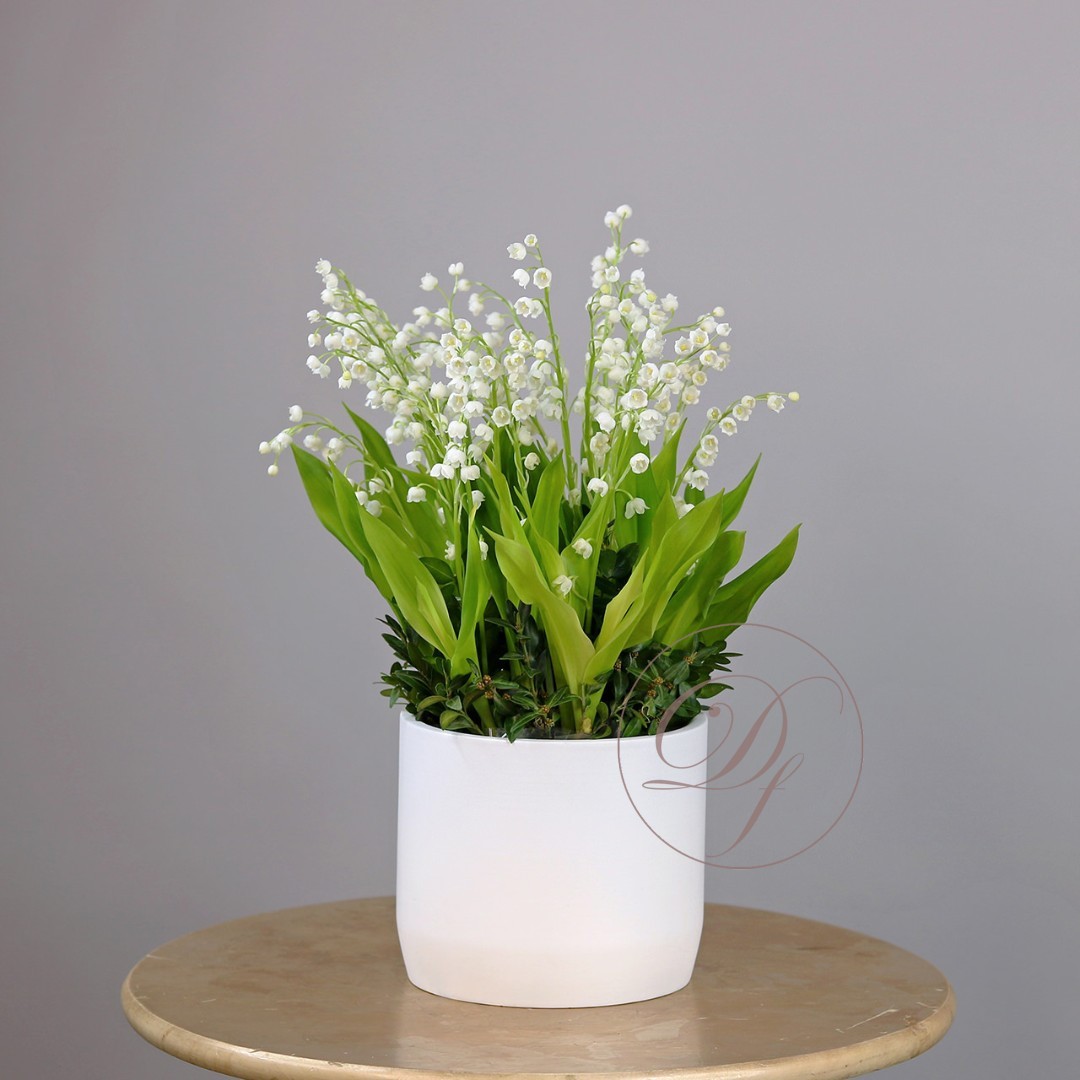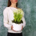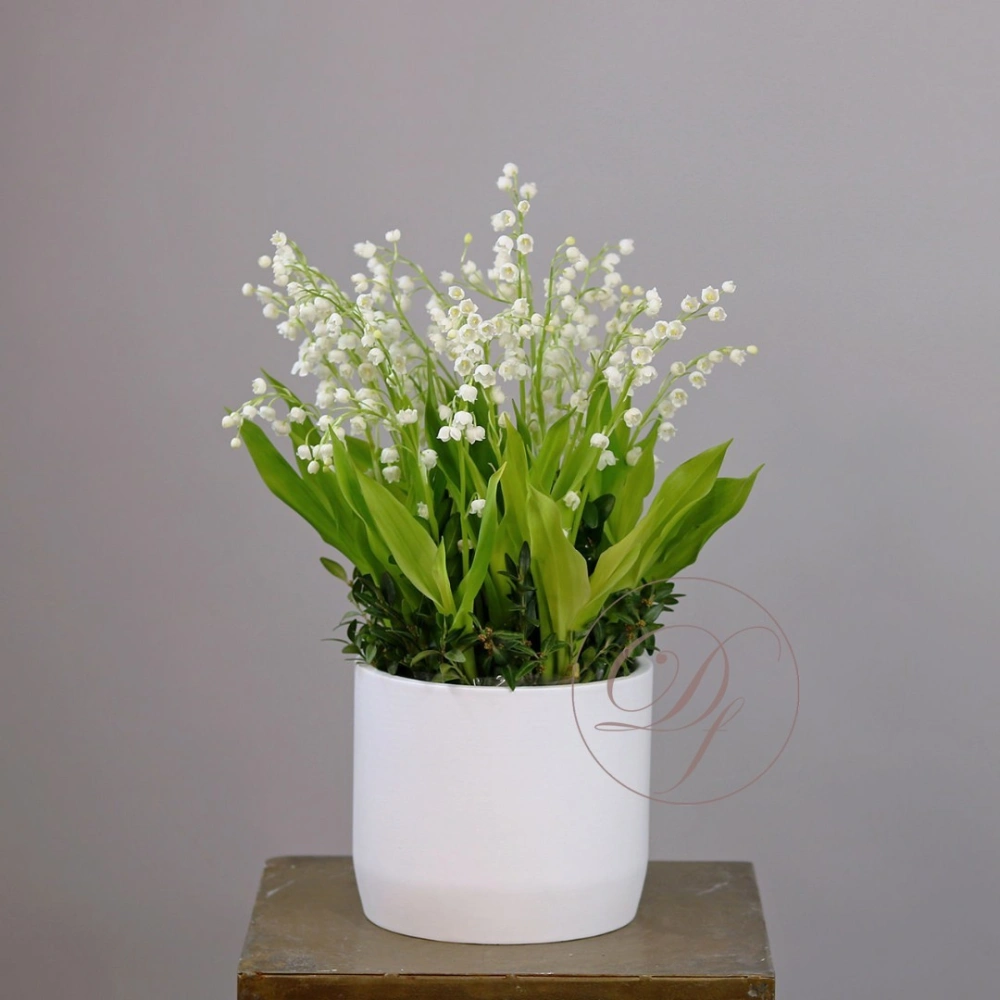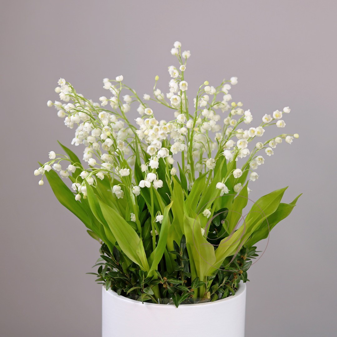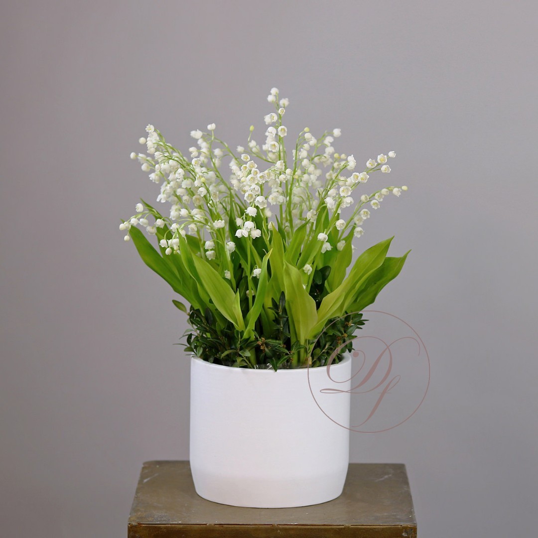 Ландыши Dakota flora. Купить ландыши в Москве. Ландыши в кашпо. Цветы в коробке это композиции, составленные с использованием специальной губки Oasis (пиафлор) которая пропитана водой. Для того чтобы цветы дольше оставались свежими, добавляйте в нее немного воды каждый день.