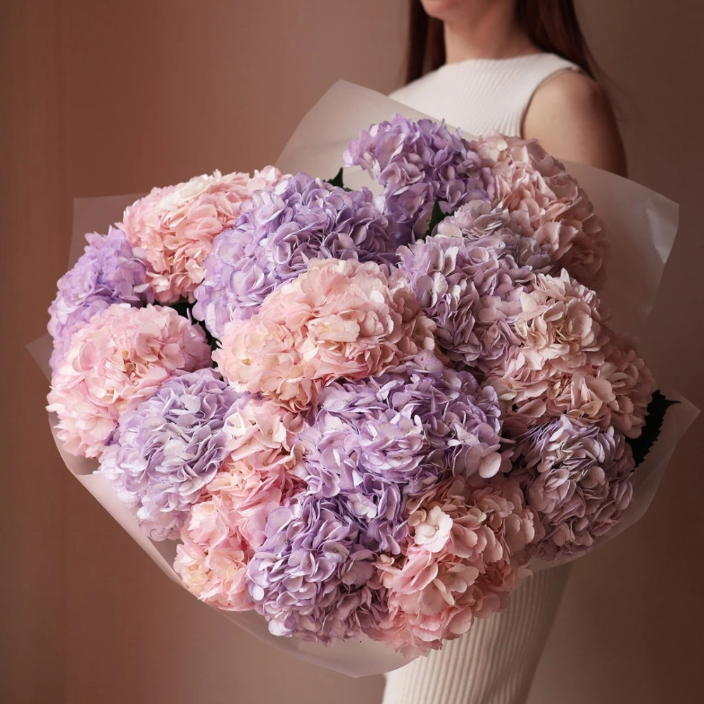 Букет из разноцветных гортензий. Вы можете выбрать любое количество цветов указанное в перечне к данному букету.