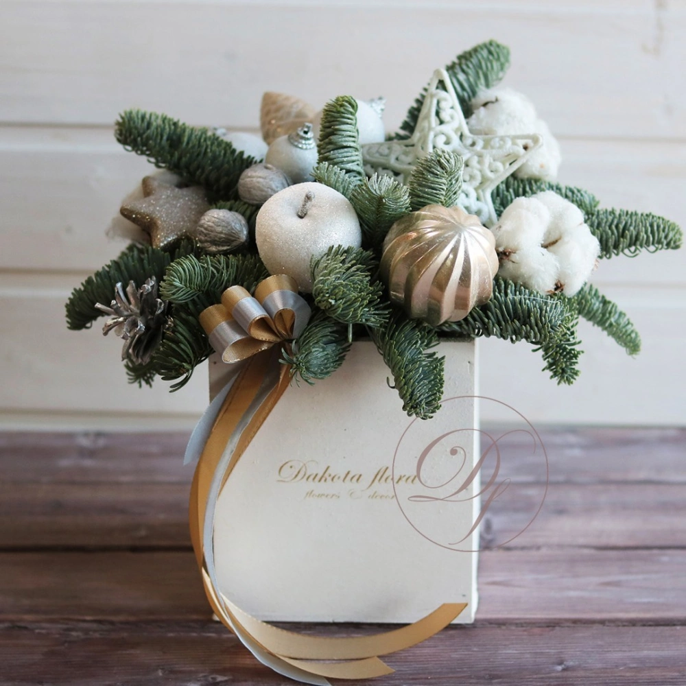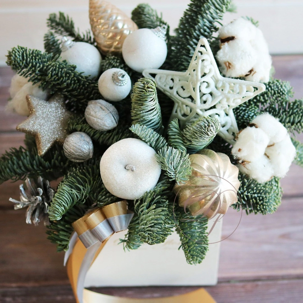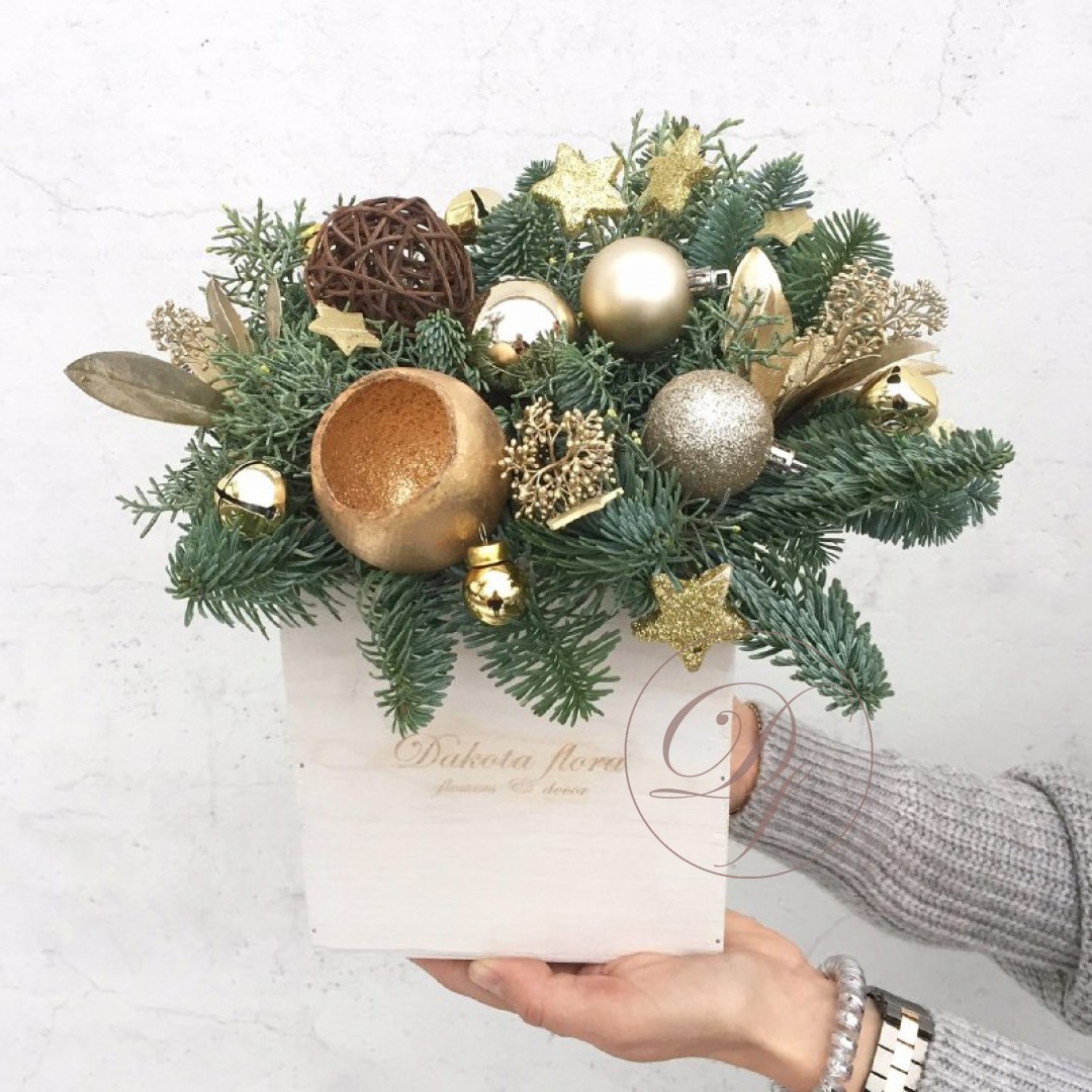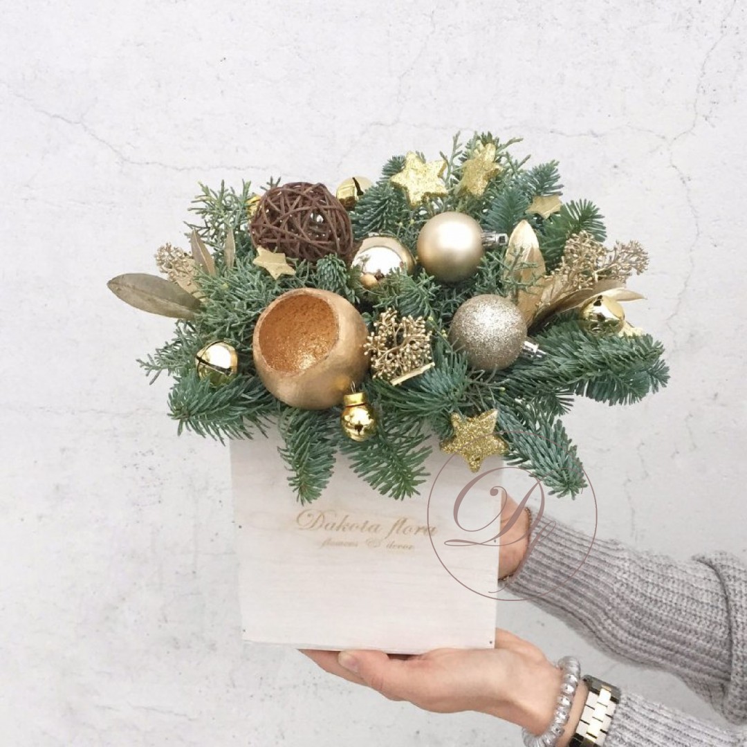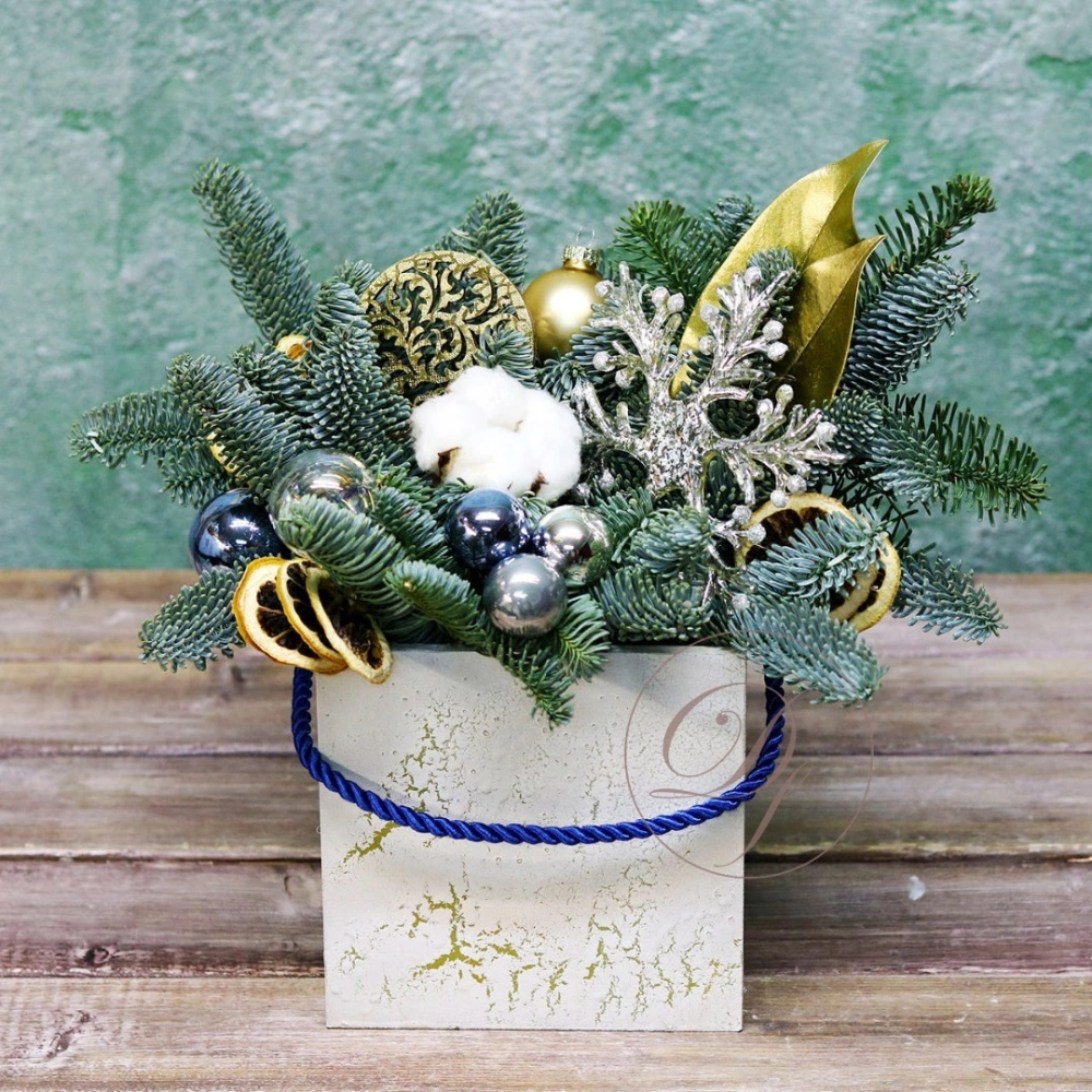 Новогодняя композиция из натуральной хвои с авторским декором на заказ.