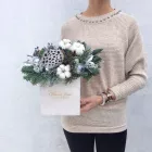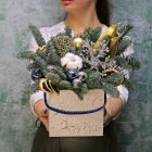 Композиция из натуральной ели хорошо подойдет для украшения дома или офиса. Размер композиции можно выбрать в карточке товара. Все композиции авторские и уникальные, каждая работа выполняется на заказ. Вы можете выбрать нужный Вам размер и рассказать нам о своих пожеланиях по дизайну.