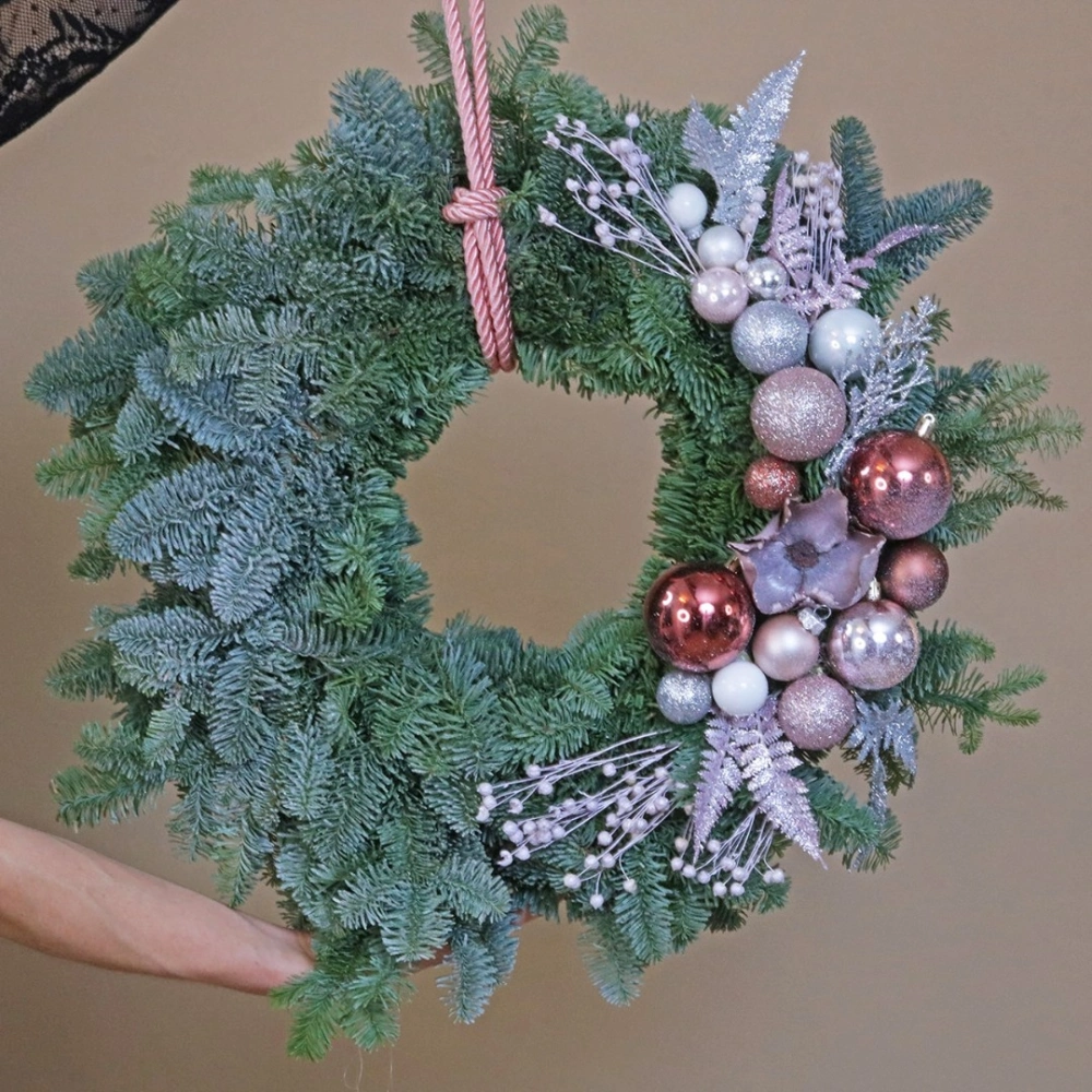 Новогодний венок из натуральной хвои с авторским декором на заказ. На фотографии венок диаметром 40-45 см.