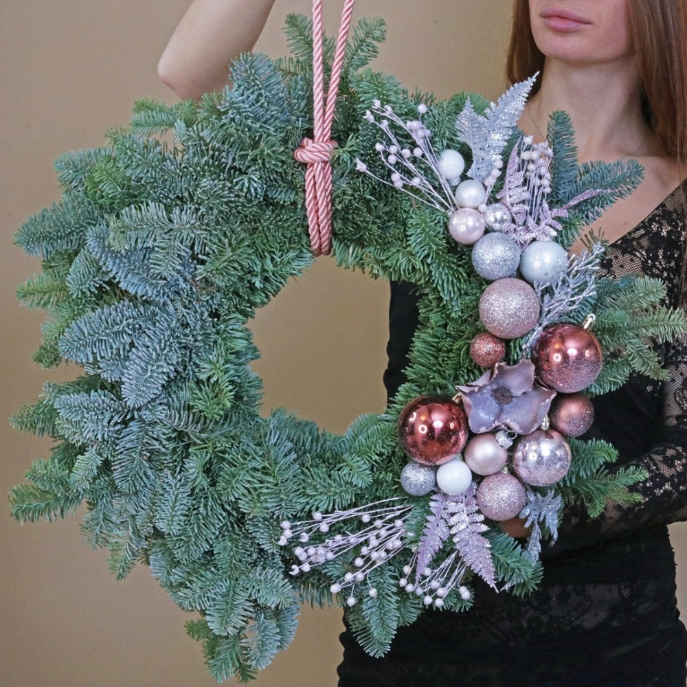 Венок хорошо подойдет для украшения квартиры, офиса, загородного дома. Диаметр новогоднего венка может быть от 30 до 65 см.