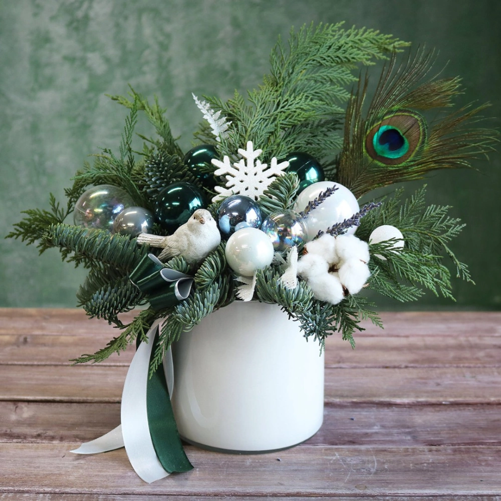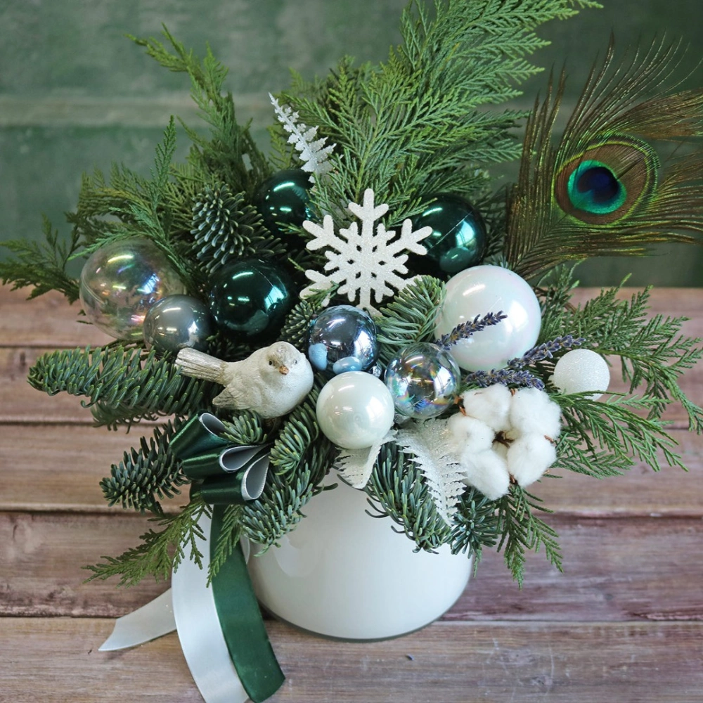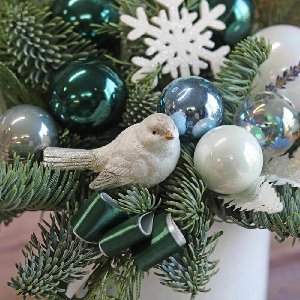 Новогодняя композиция из натуральной хвои с авторским декором на заказ.