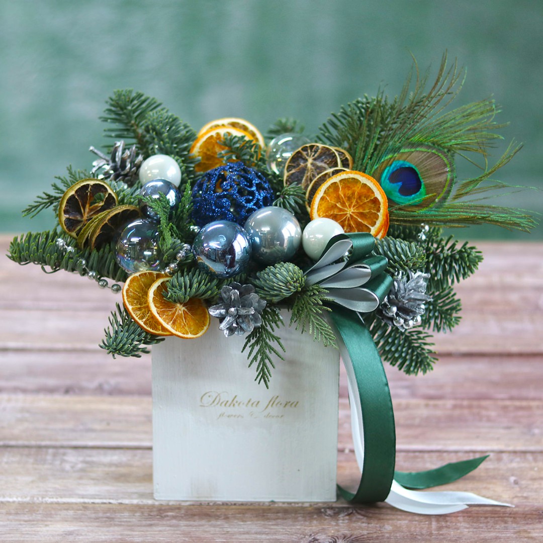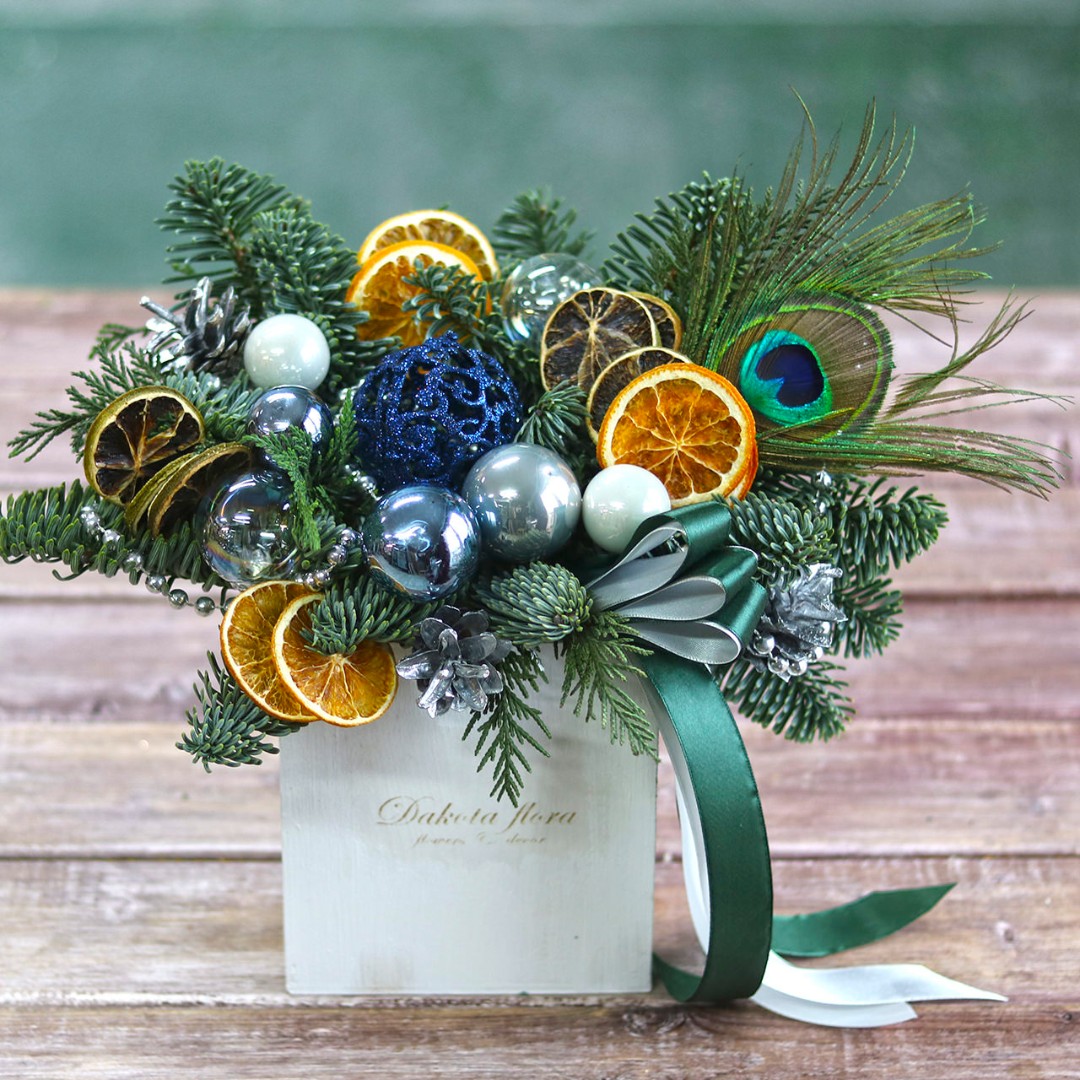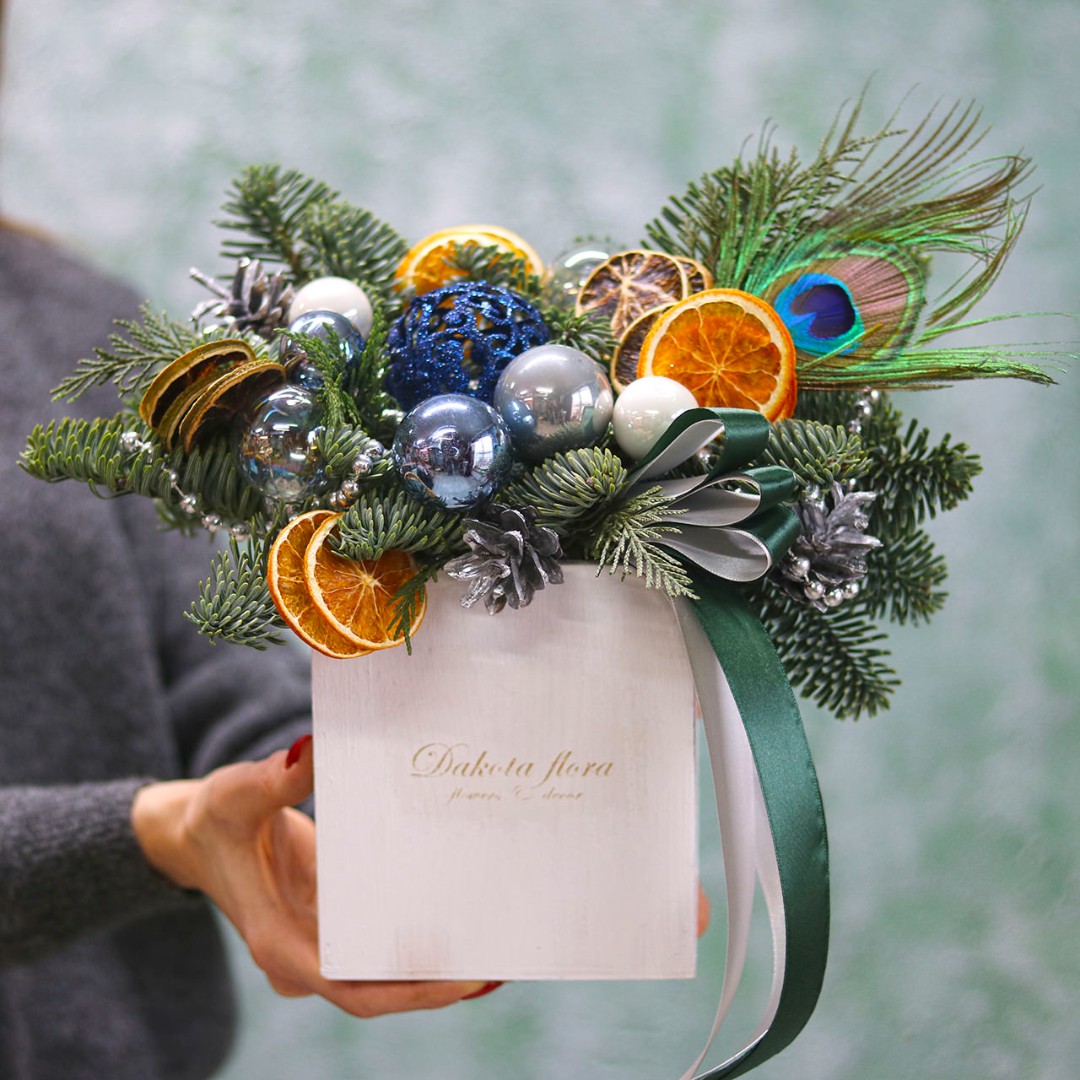 Новогодняя композиция из натуральной хвои с авторским декором на заказ.