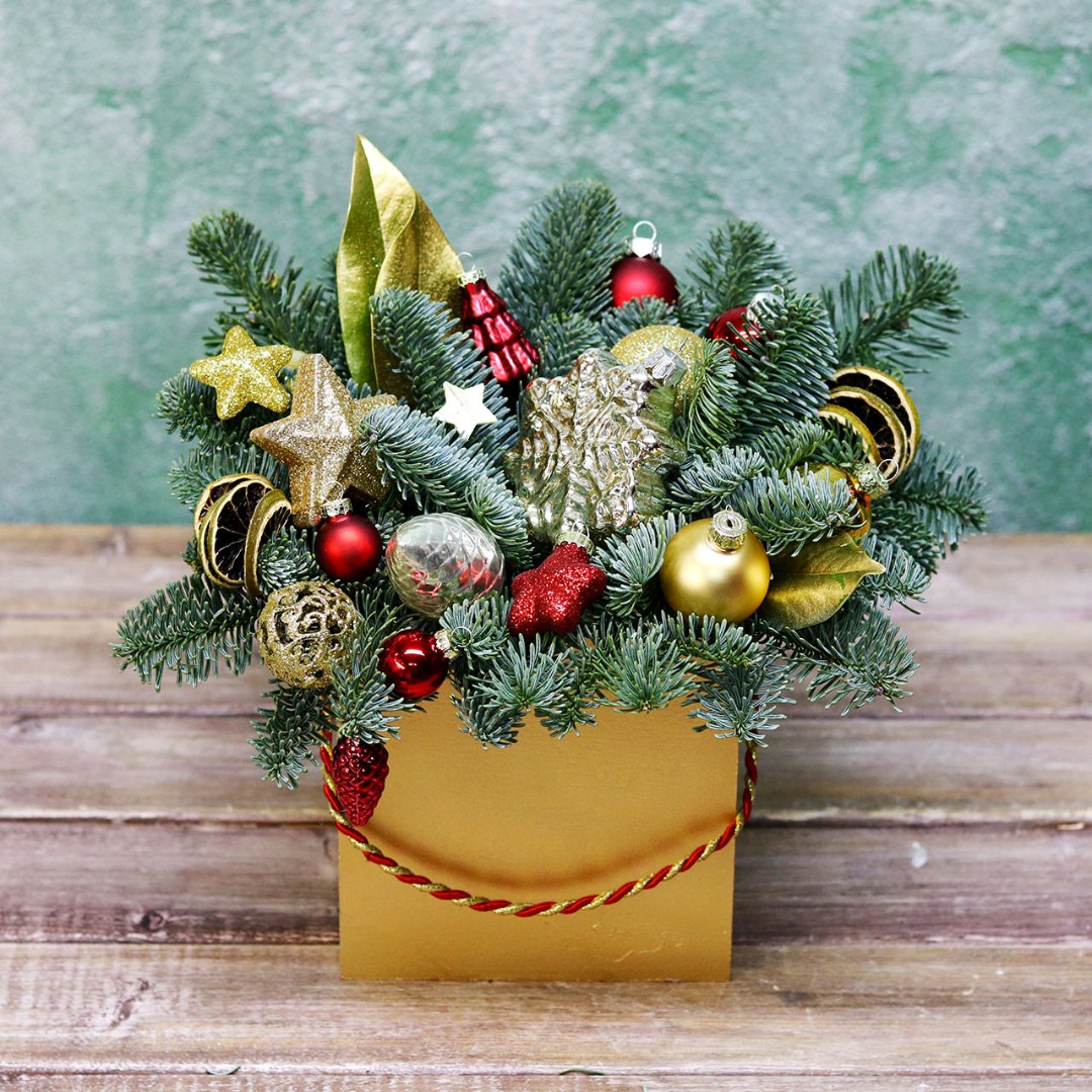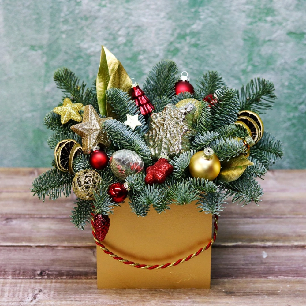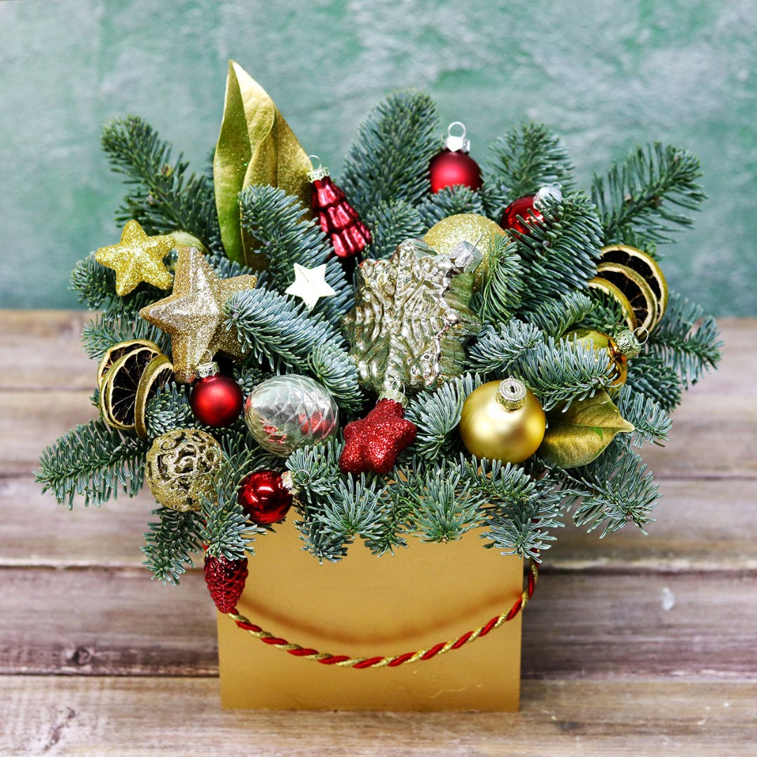Новогодняя композиция из натуральной хвои с авторским декором на заказ.
