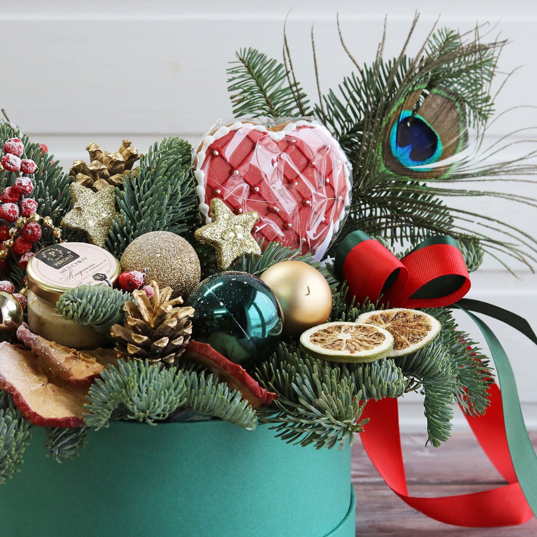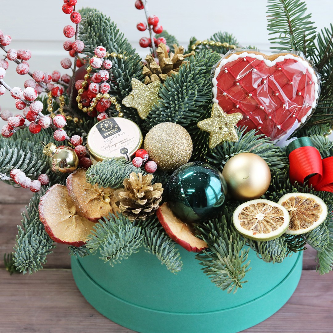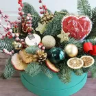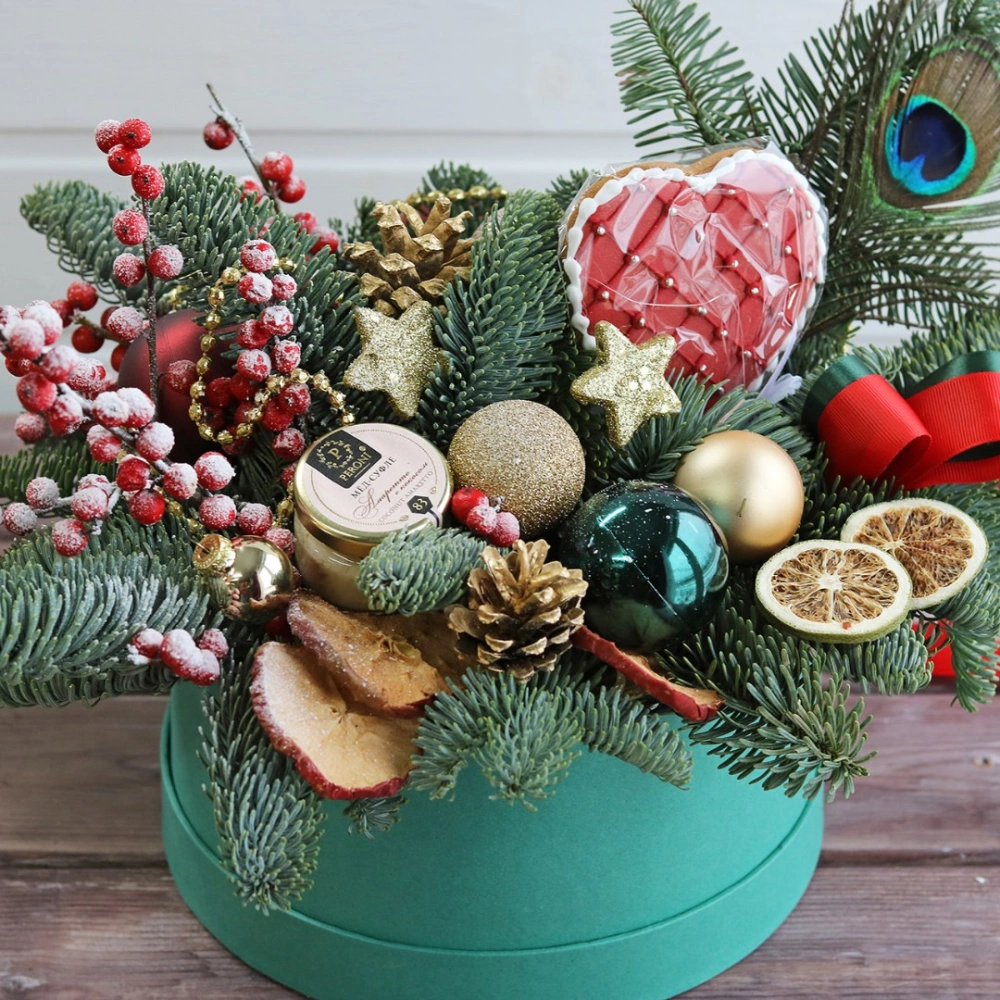 Новогодняя композиция из натуральной хвои с авторским декором на заказ.