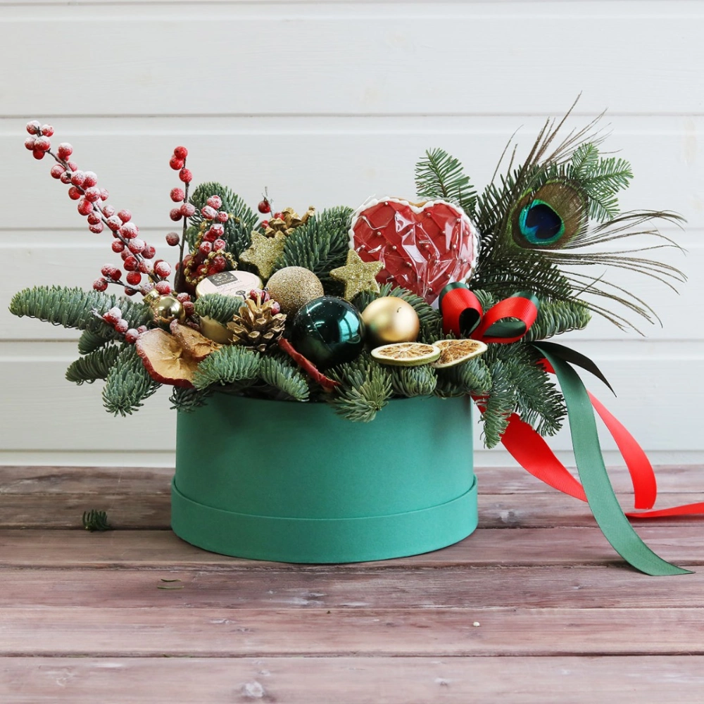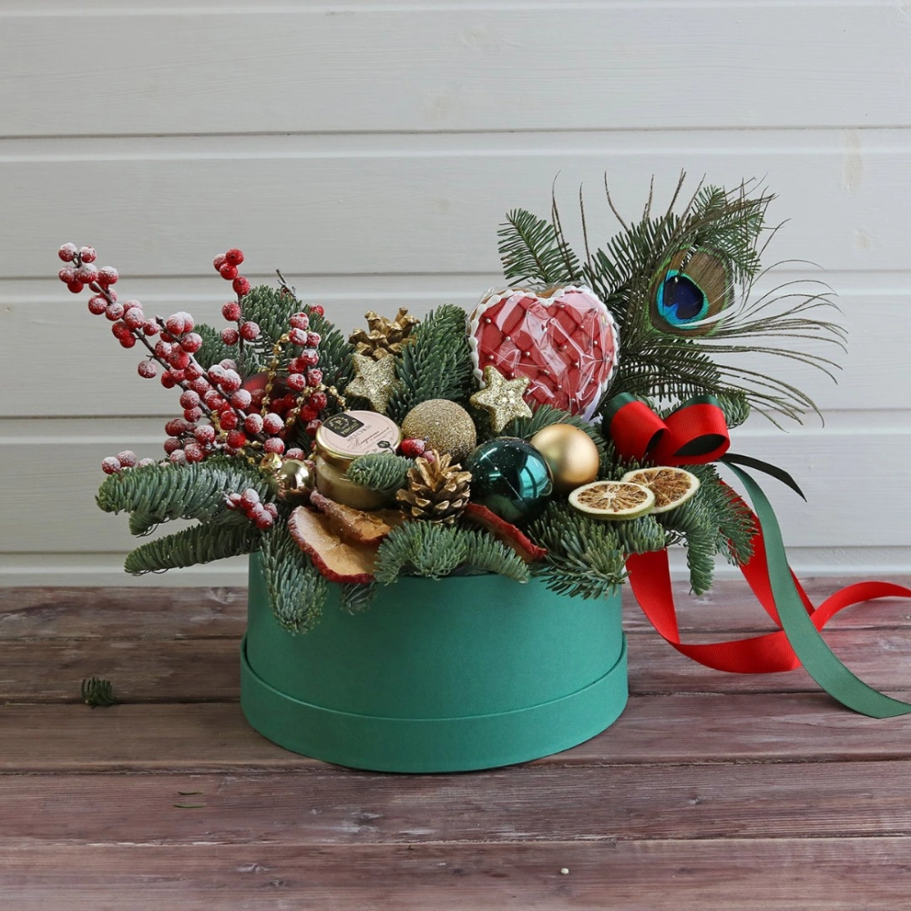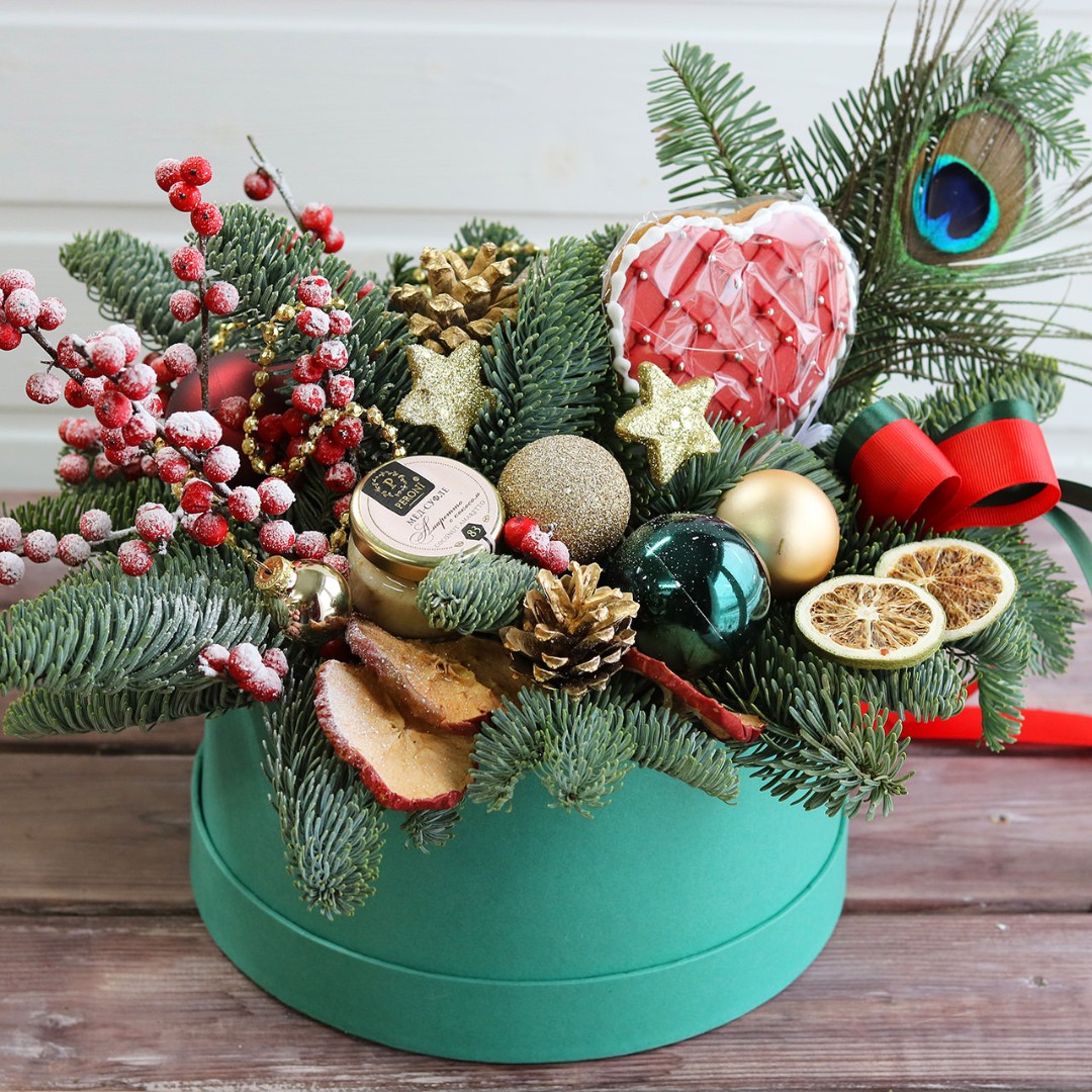 Новогодняя композиция из натуральной хвои с авторским декором на заказ.