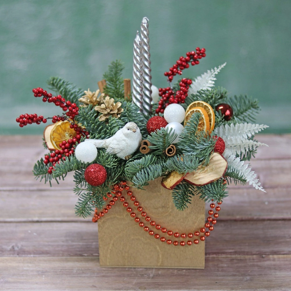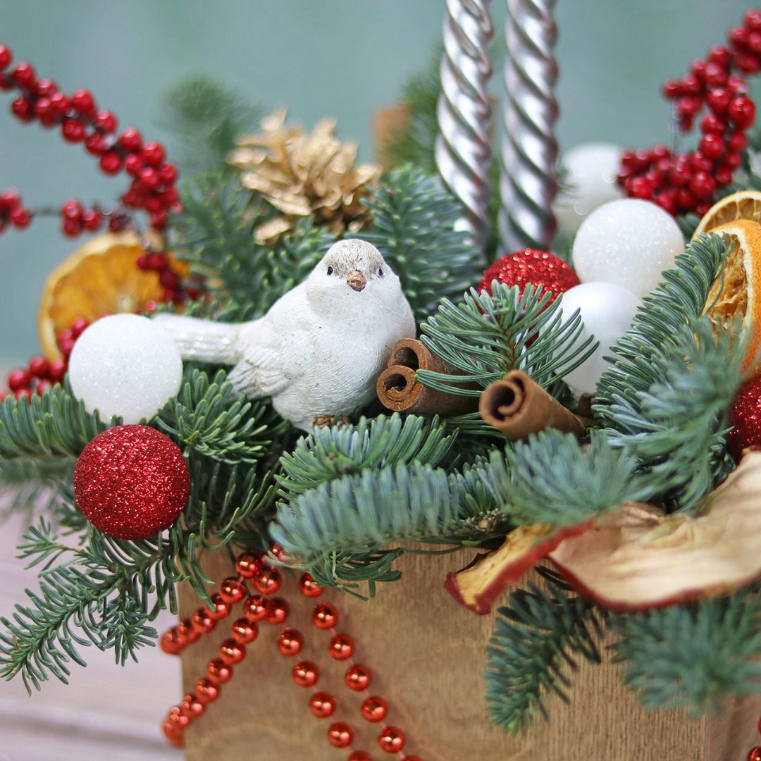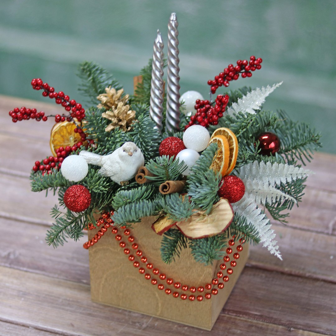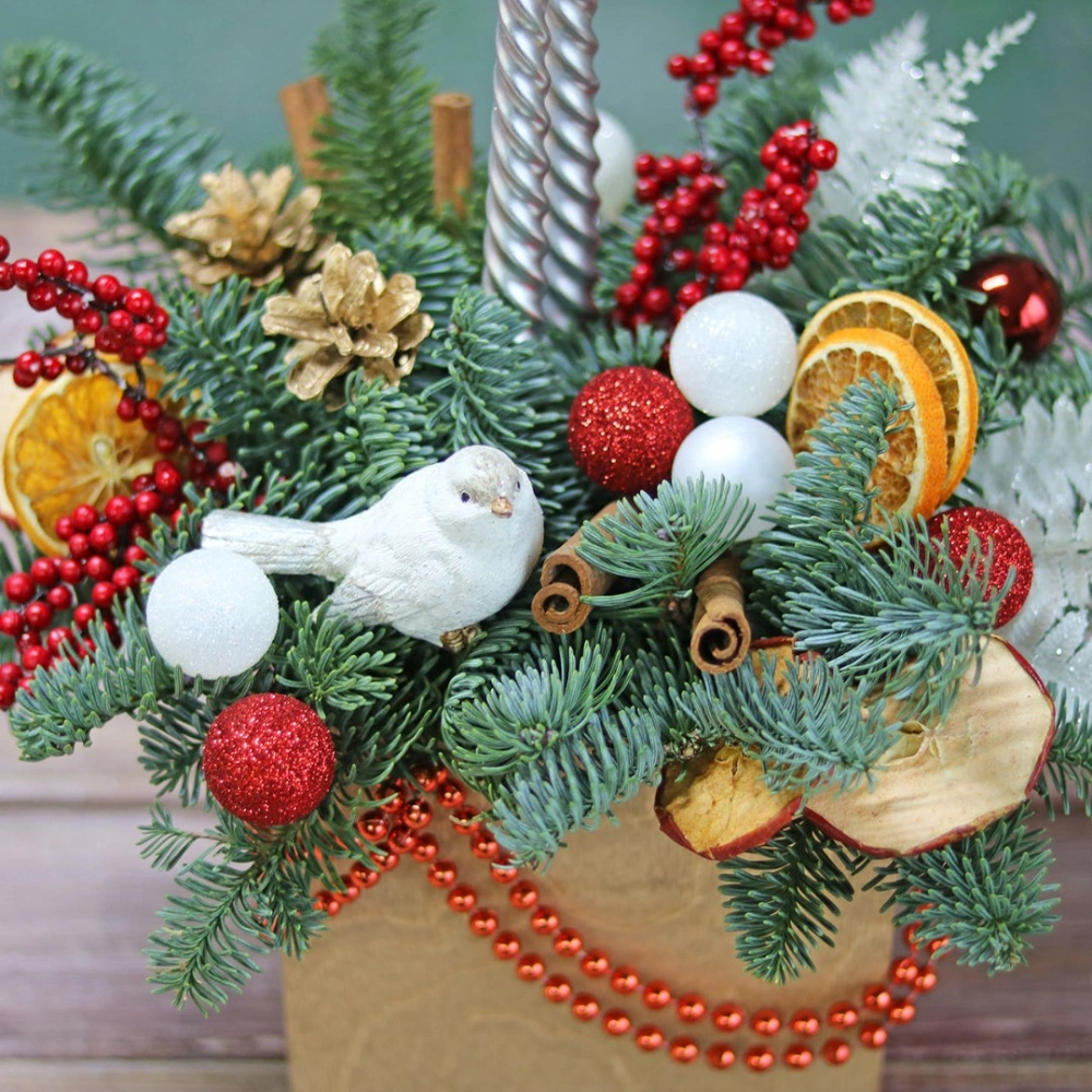 Новогодняя композиция из натуральной хвои с авторским декором на заказ.