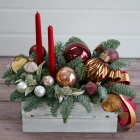 Оформить заказ на композицию из ели, лучше заранее, минимум за сутки, для изготовления и подбора декора требуется время. Композиция выполнена из натуральной ели (лапник), собрана на специальной губке, которая пропитана водой, это позволяет сохранить свежий внешний вид на максимально долгий срок. Для украшения мы используем новогодний декор, натуральные материалы, свечи, гирлянды.
