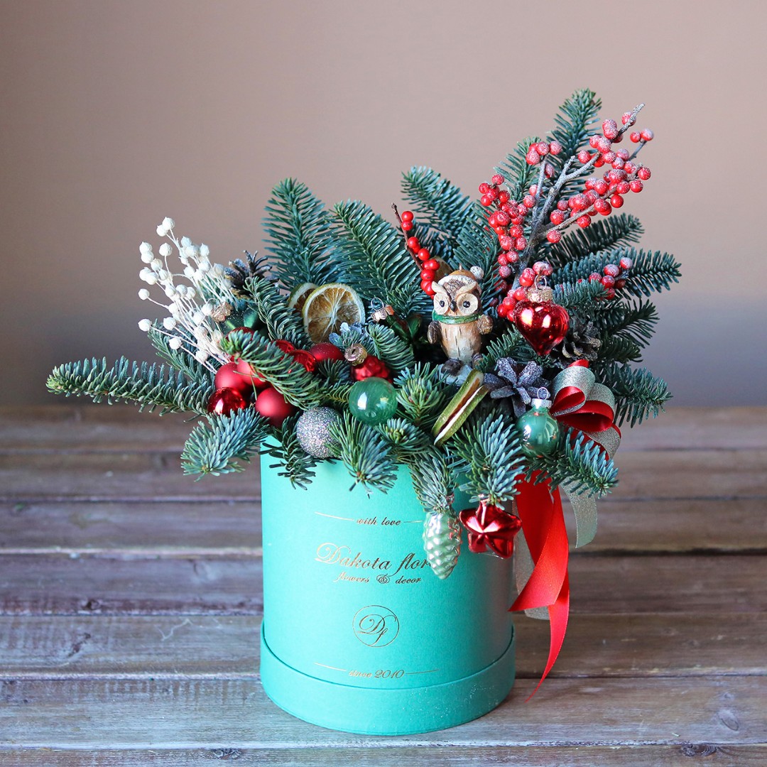 Новогодняя композиция из натуральной хвои с авторским декором на заказ.