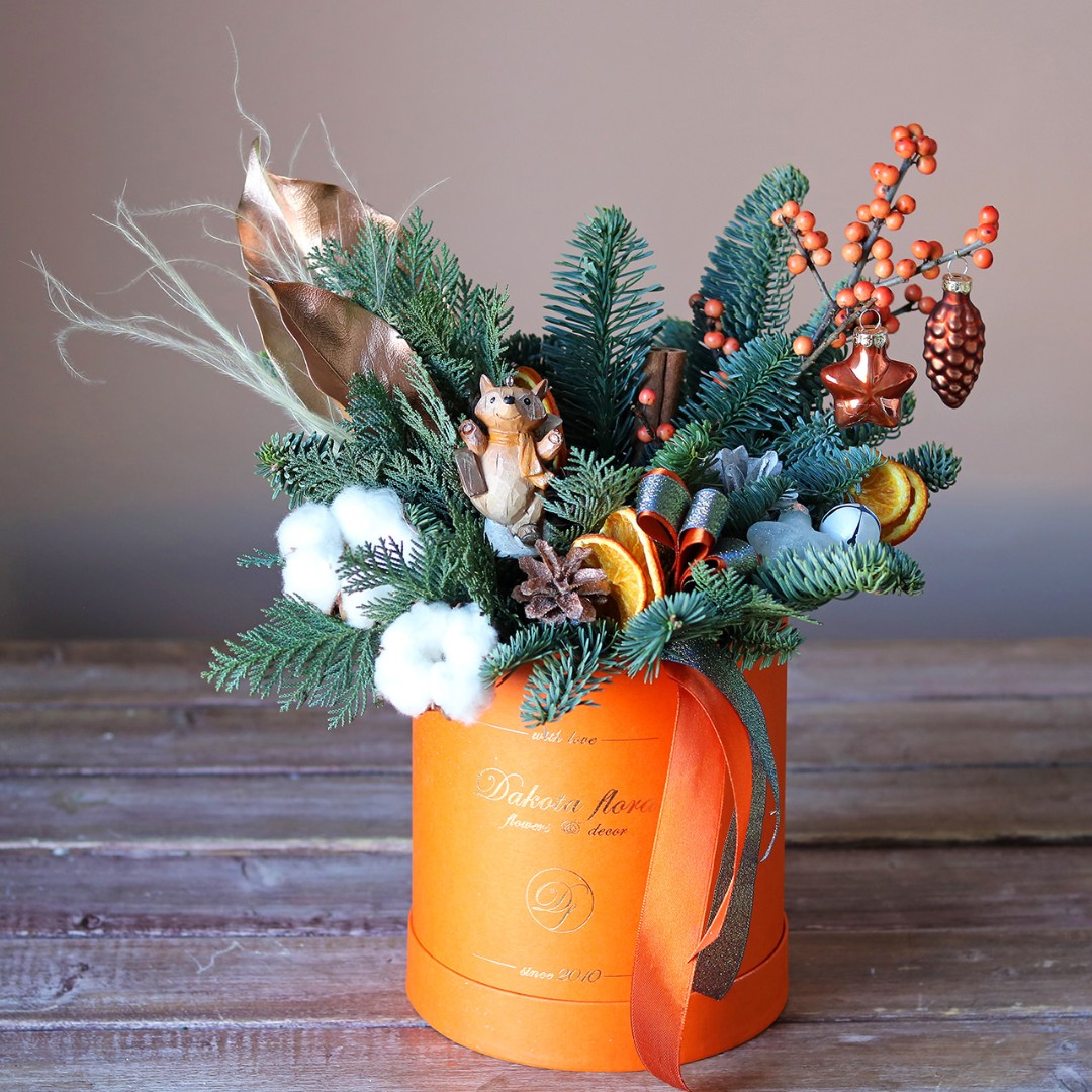 Композиция из натуральной ели хорошо подойдет для украшения дома или офиса. Размер композиции можно выбрать в карточке товара. Все композиции авторские и уникальные, каждая работа выполняется на заказ. Вы можете выбрать нужный Вам размер и рассказать нам о своих пожеланиях по дизайну.