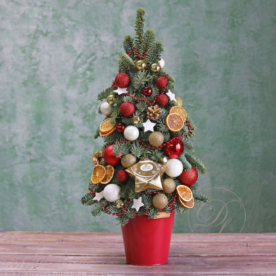 Декоративная ёлочка из натуральной хвои с авторским декором на заказ.