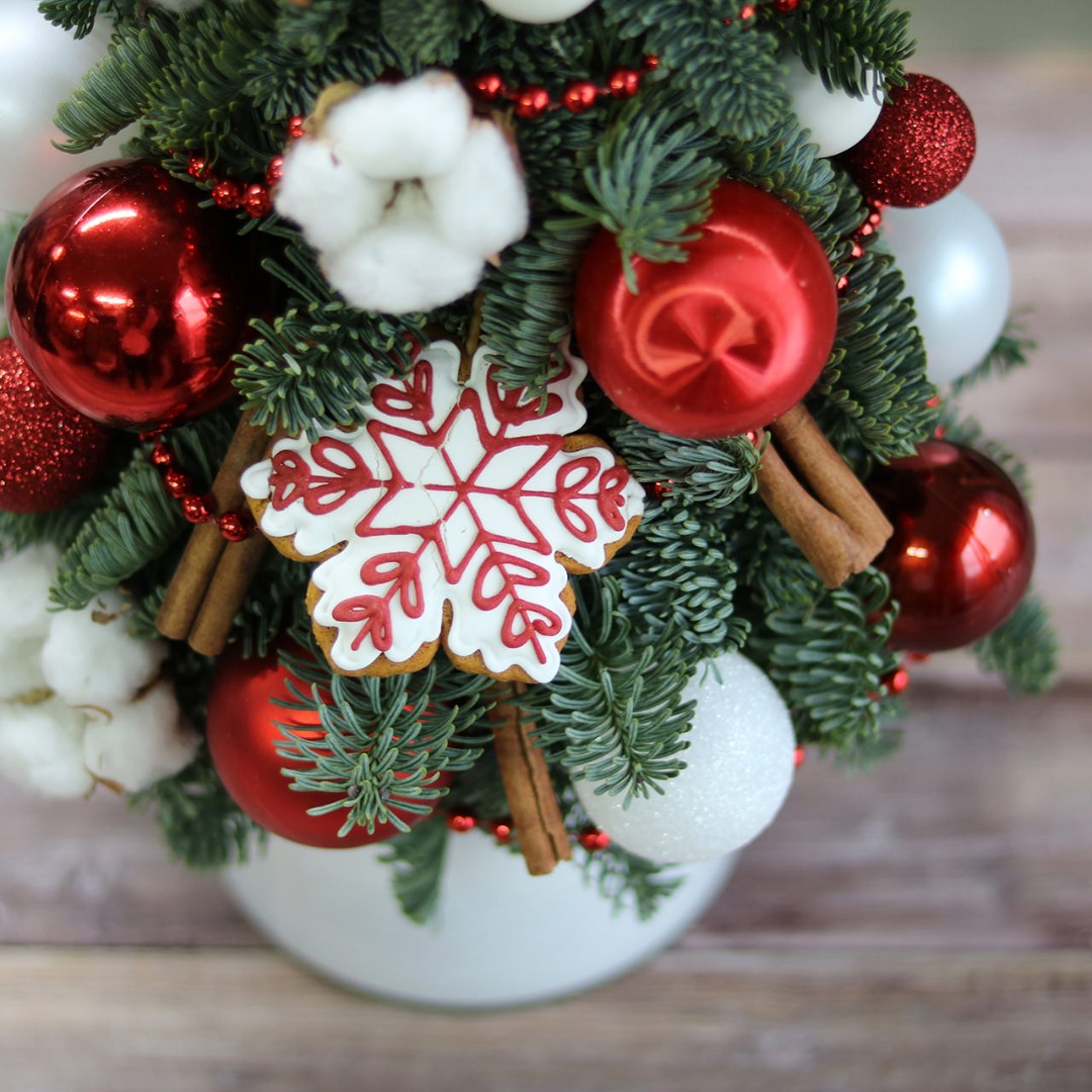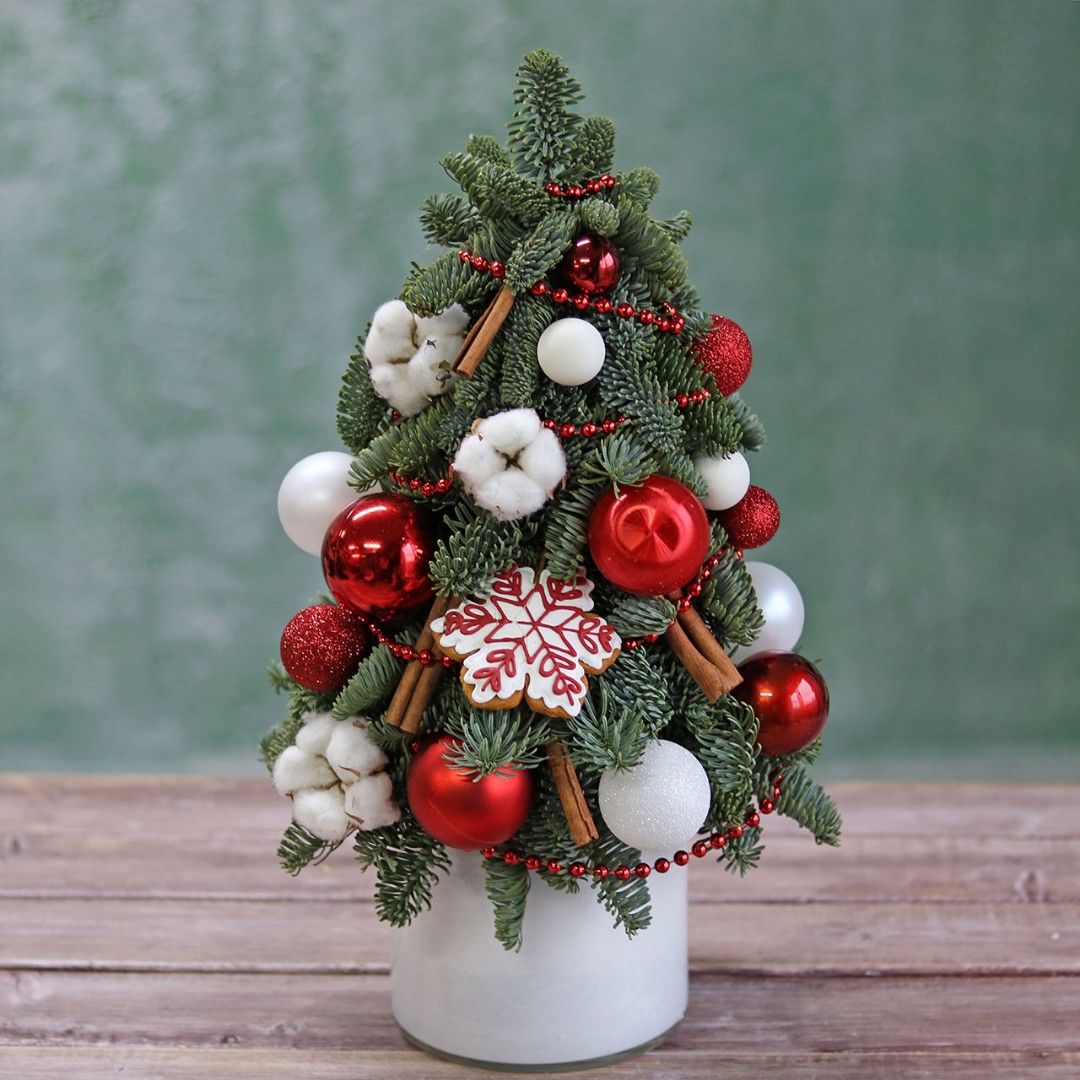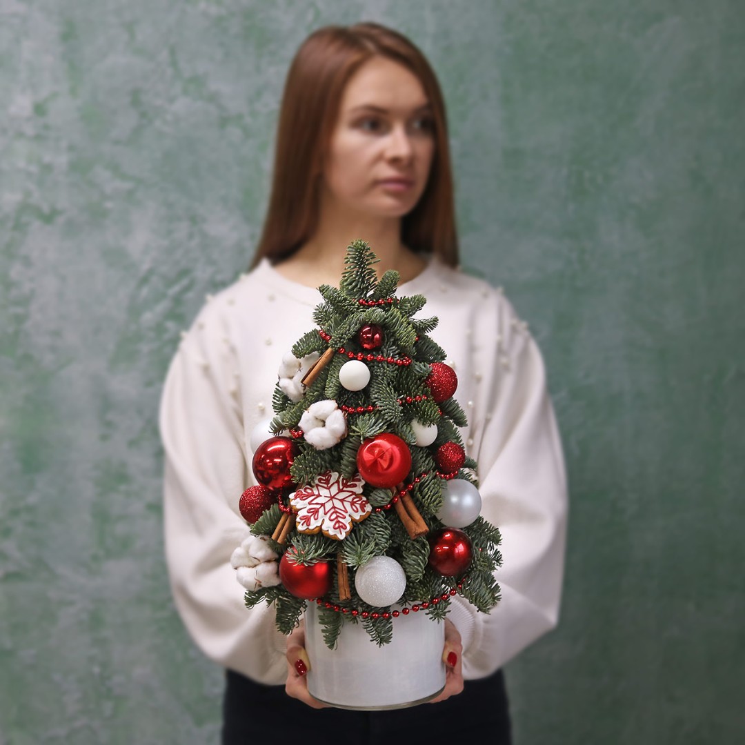 Новогодняя ёлочка из натуральной хвои с авторским декором на заказ.