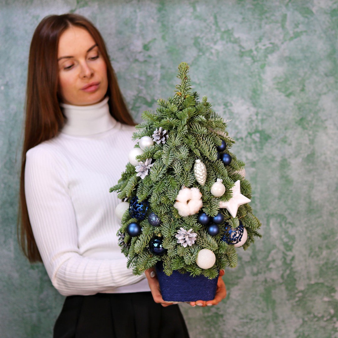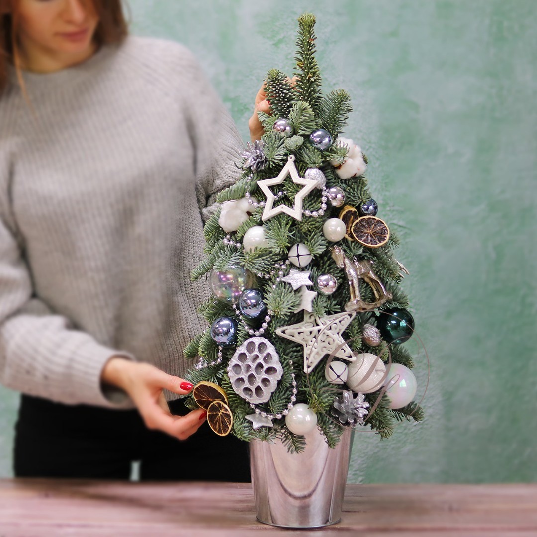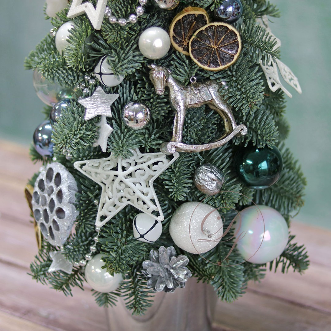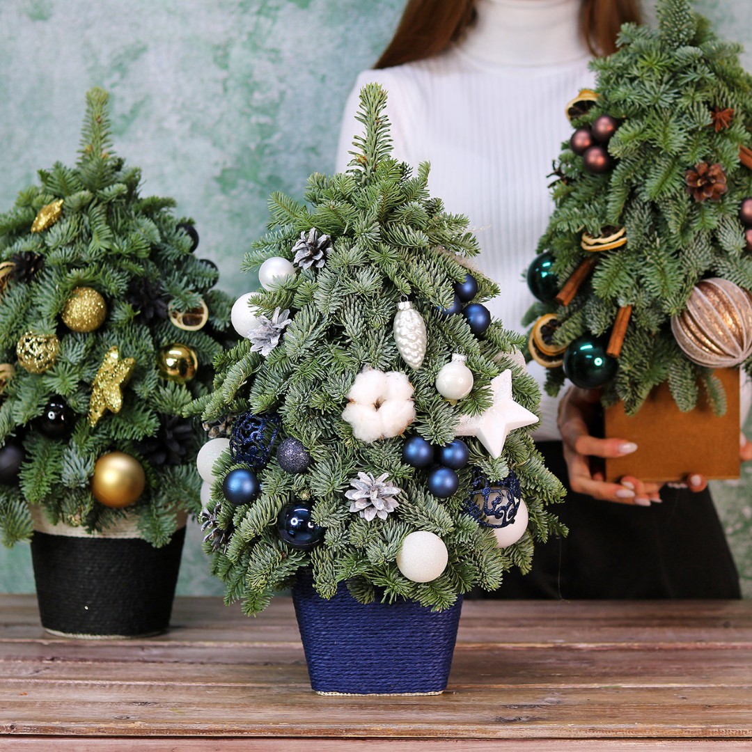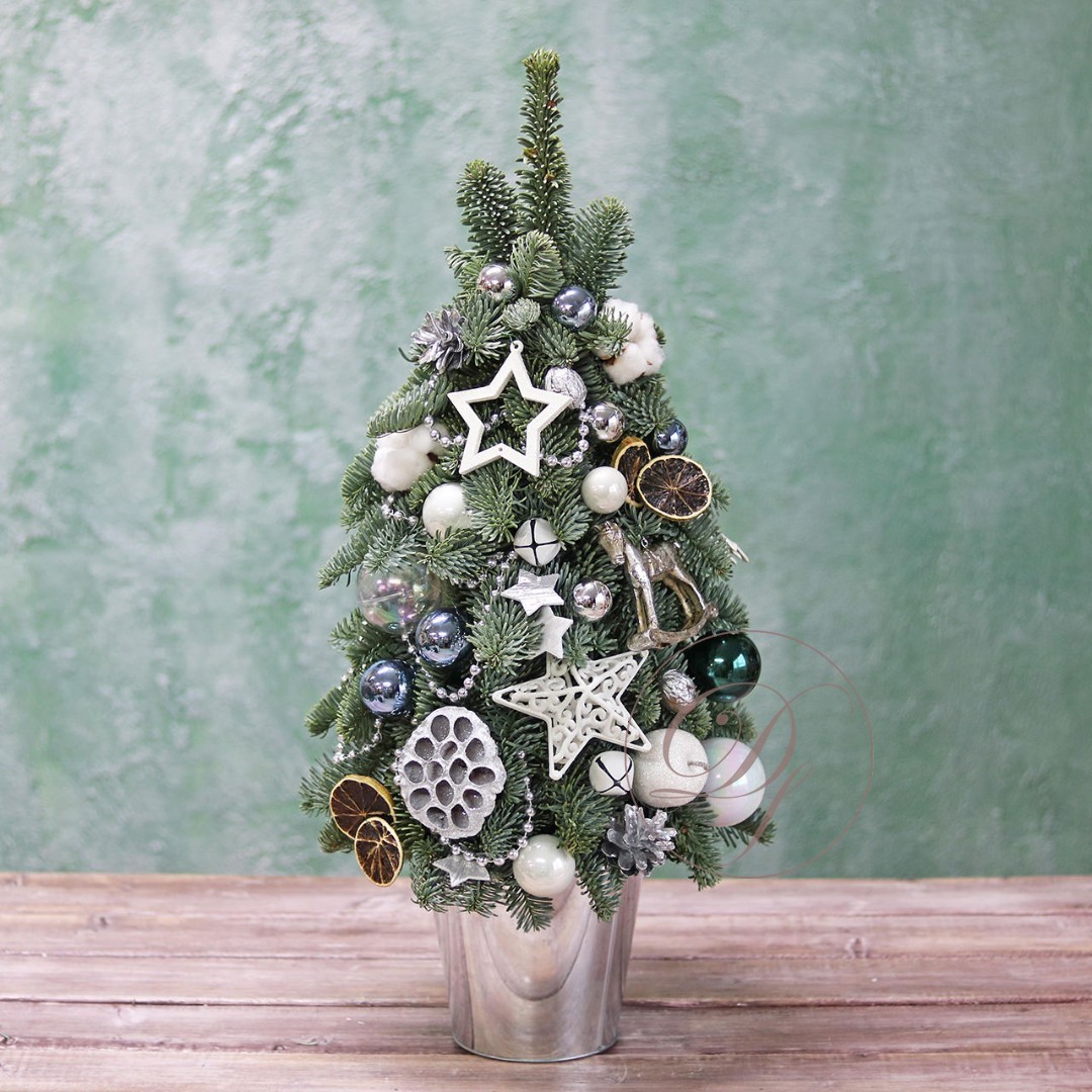 Новогодняя ёлочка из натуральной хвои с авторским декором на заказ. На фотографии елочка высотой 40-45 см.