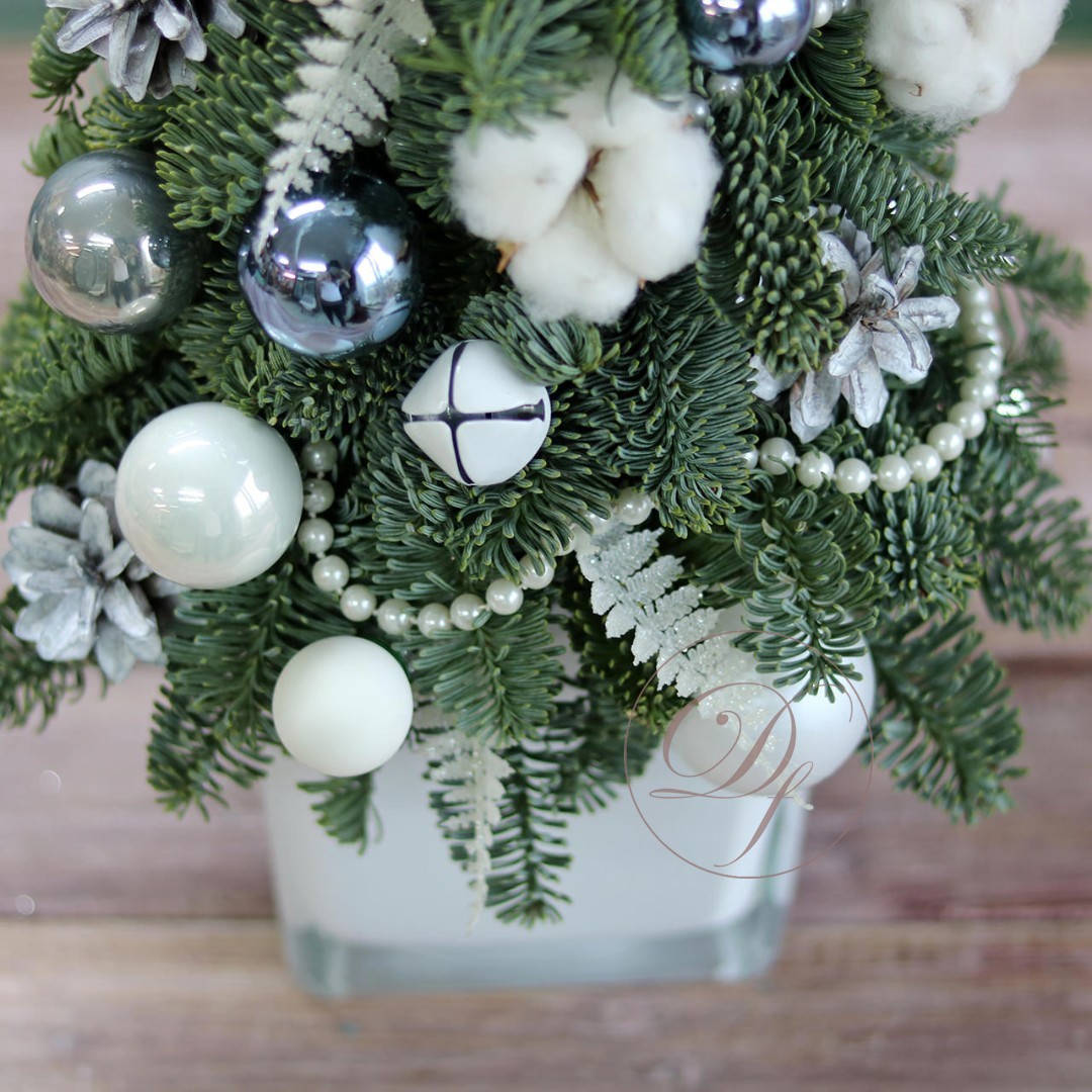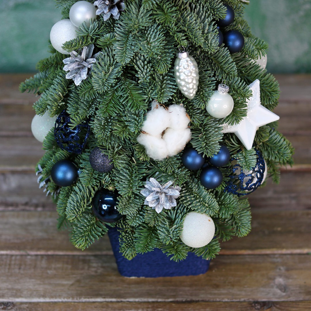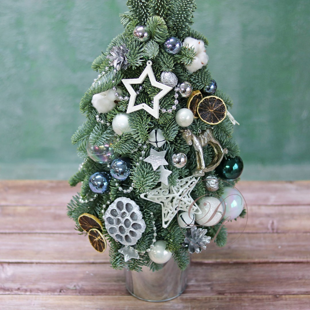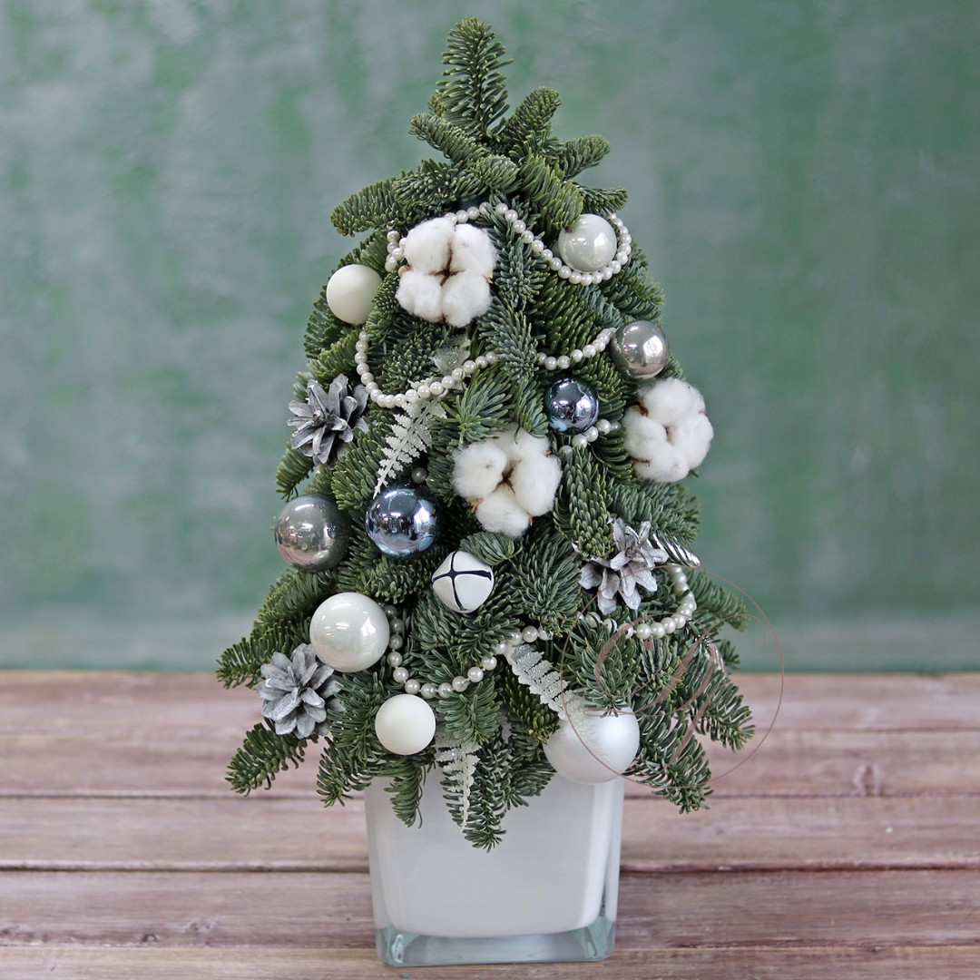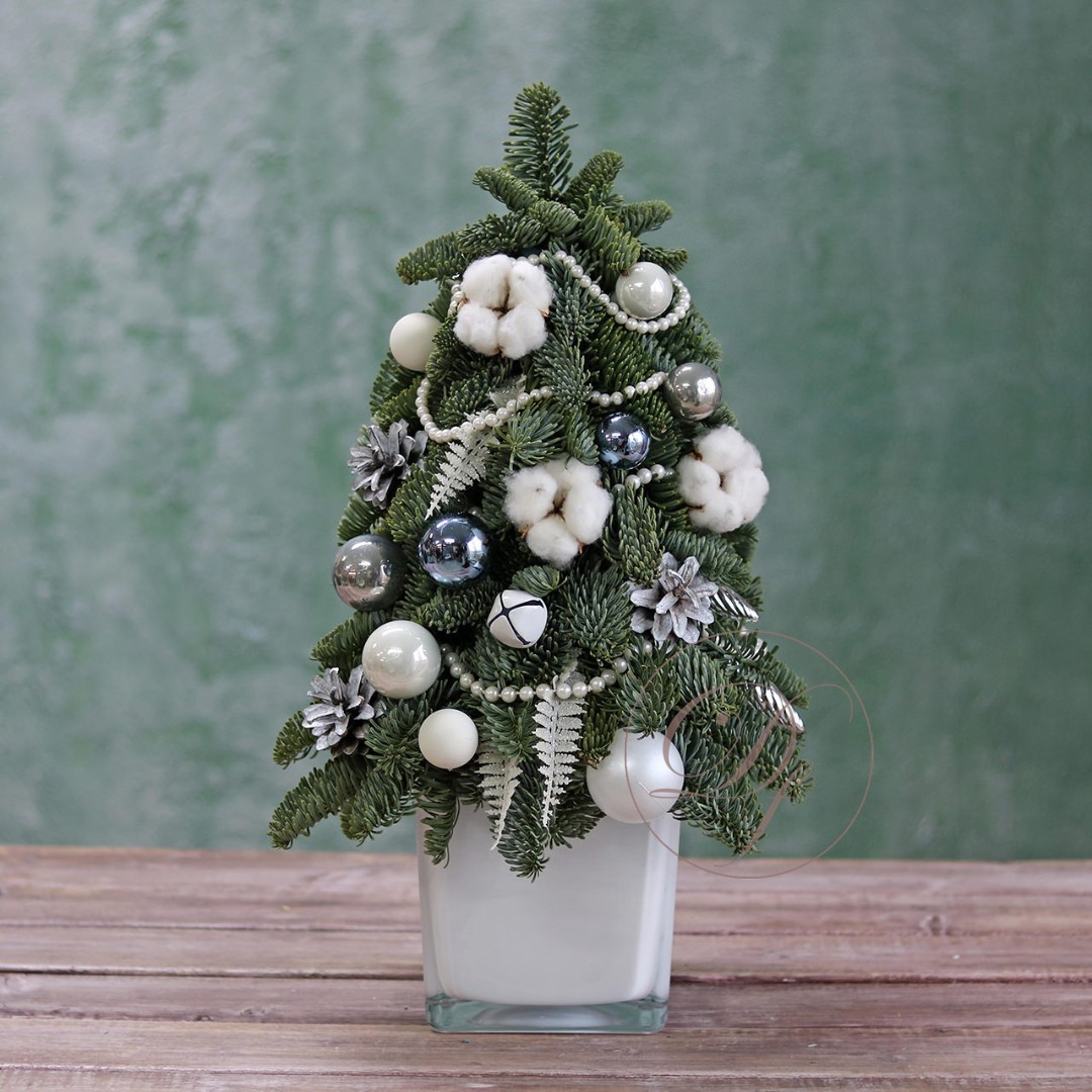 Новогодняя ёлочка из натуральной хвои с авторским декором на заказ. На фотографии елочка высотой 40-45 см.