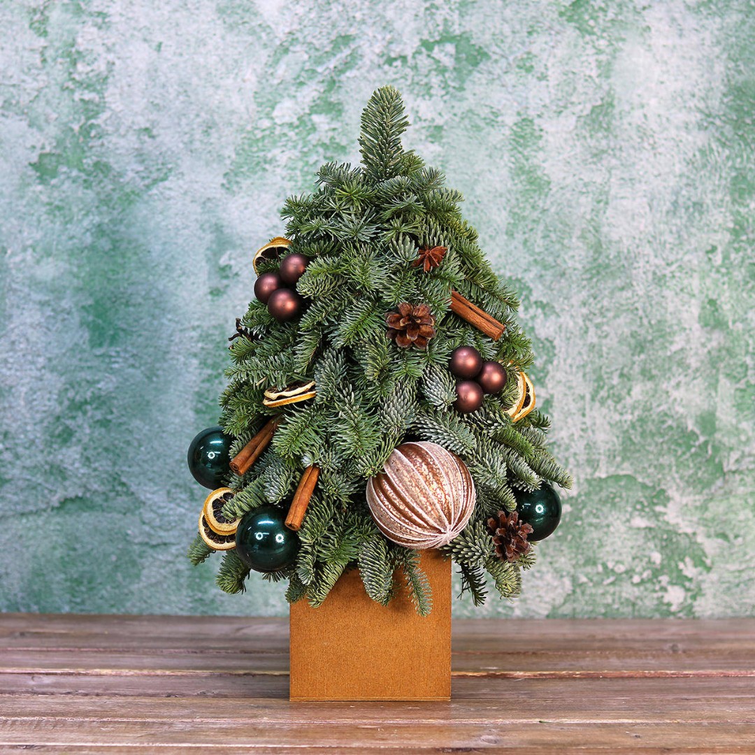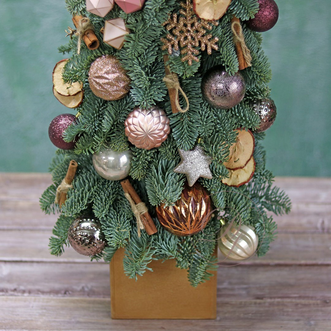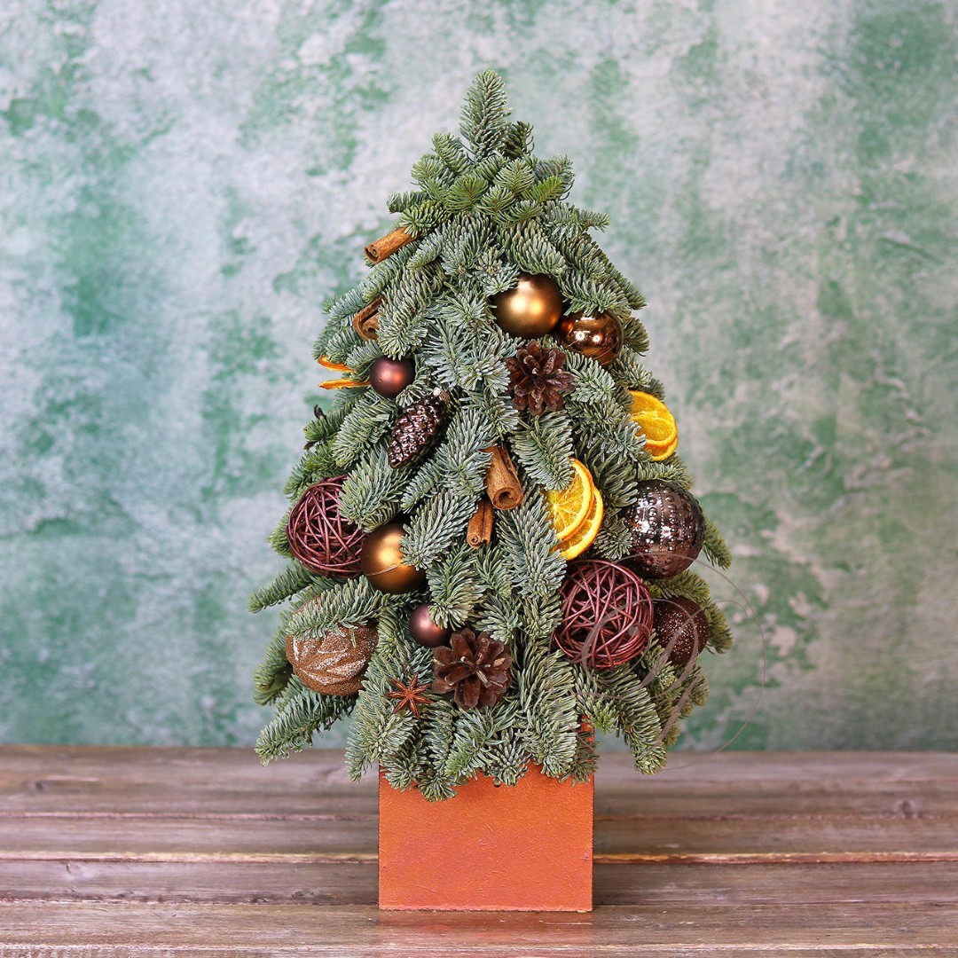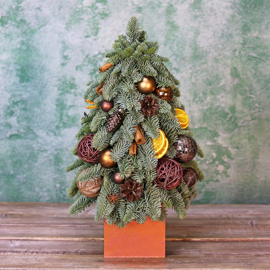 Новогодняя ёлочка из натуральной хвои с авторским декором на заказ. На фотографии елочка высотой 40-45 см.